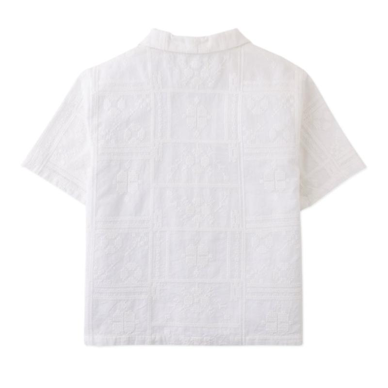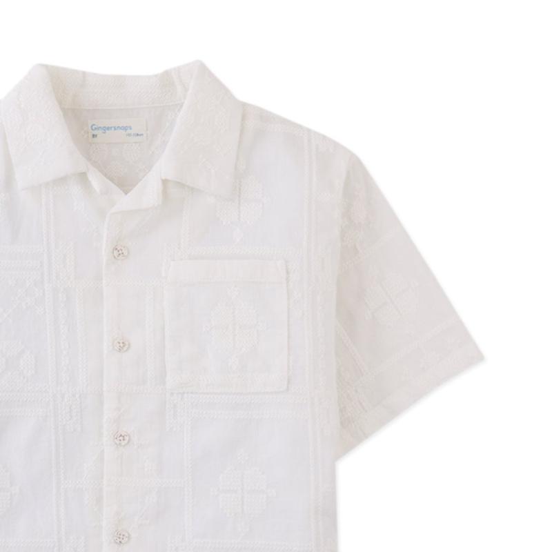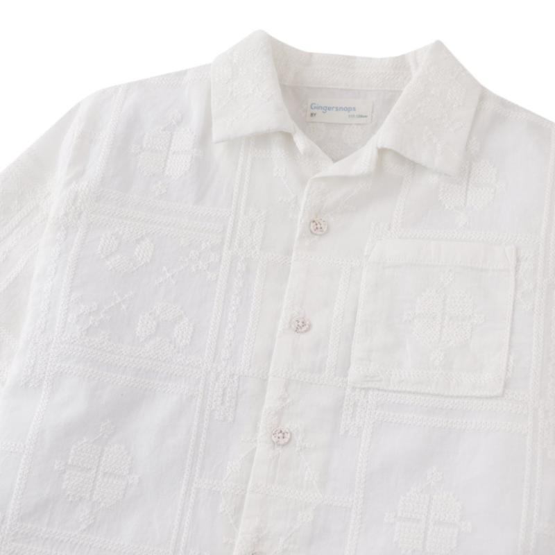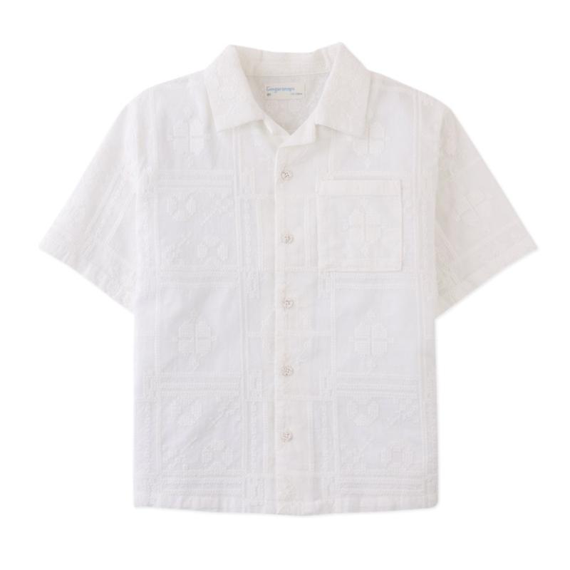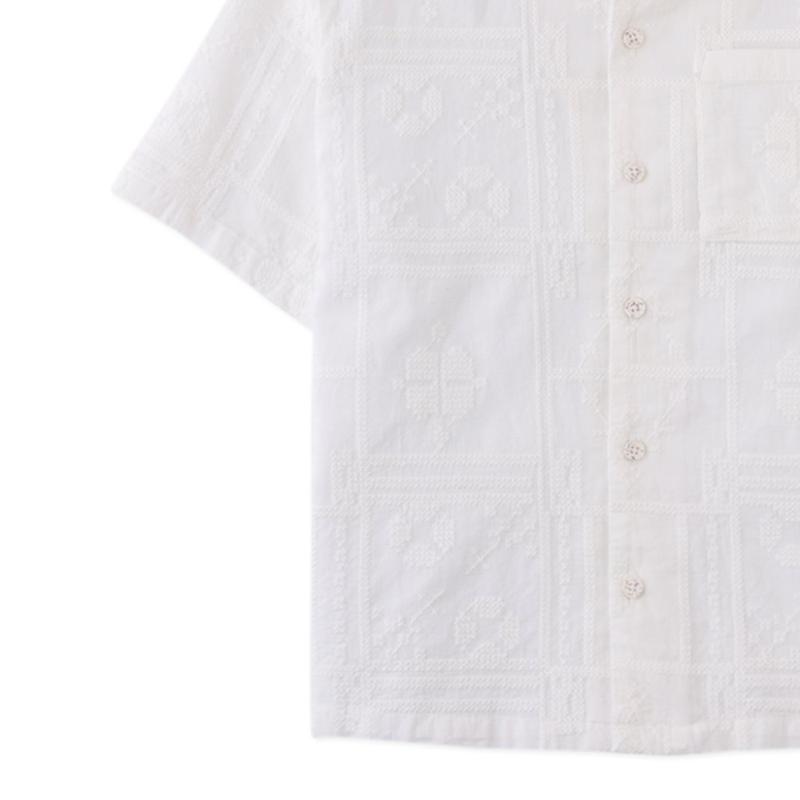Аккуратный воротник и застежка на пуговицах формируют собранный образ, при этом модель остается удобной для повседневной носки. Деликатная вышивка добавляет изящную деталь, не перегружая лаконичный дизайн. Прямой крой не сковывает движений. Рубашка легко сочетается с шортами, брюками и подходит для разных случаев — от прогулок до семейных встреч.