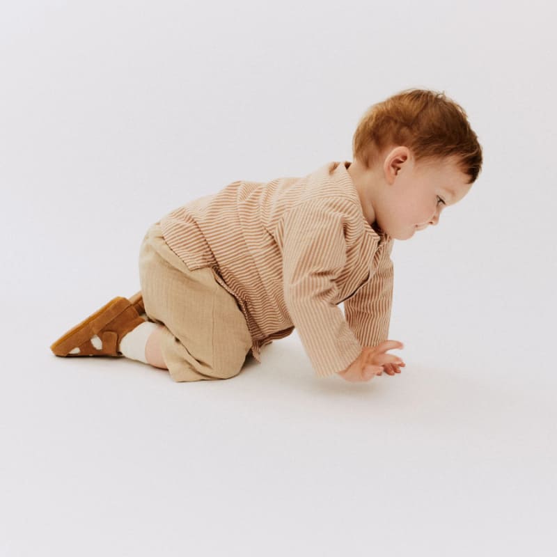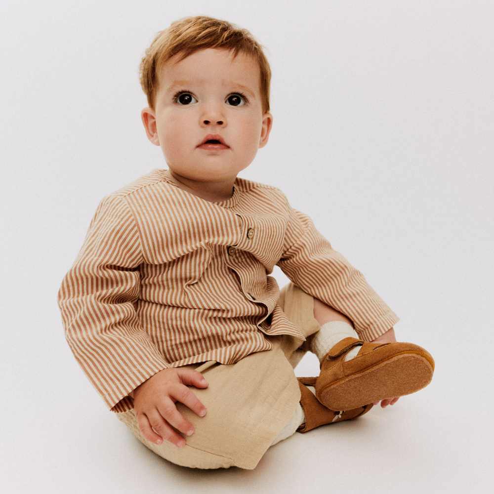 Рубашка с карамельными полосками — стильный и универсальный элемент гардероба для маленьких модников. Легкая и комфортная ткань позволяет коже дышать, а карамельные полоски добавляют модный акцент в образ. Классический крой с удобными застежками делает эту рубашку отличным вариантом для любого повседневного мероприятия. Сочетая элегантность и практичность, рубашка идеально подходит для комбинирования с брюками, шортами или джинсами, обеспечивая легкость и стиль.