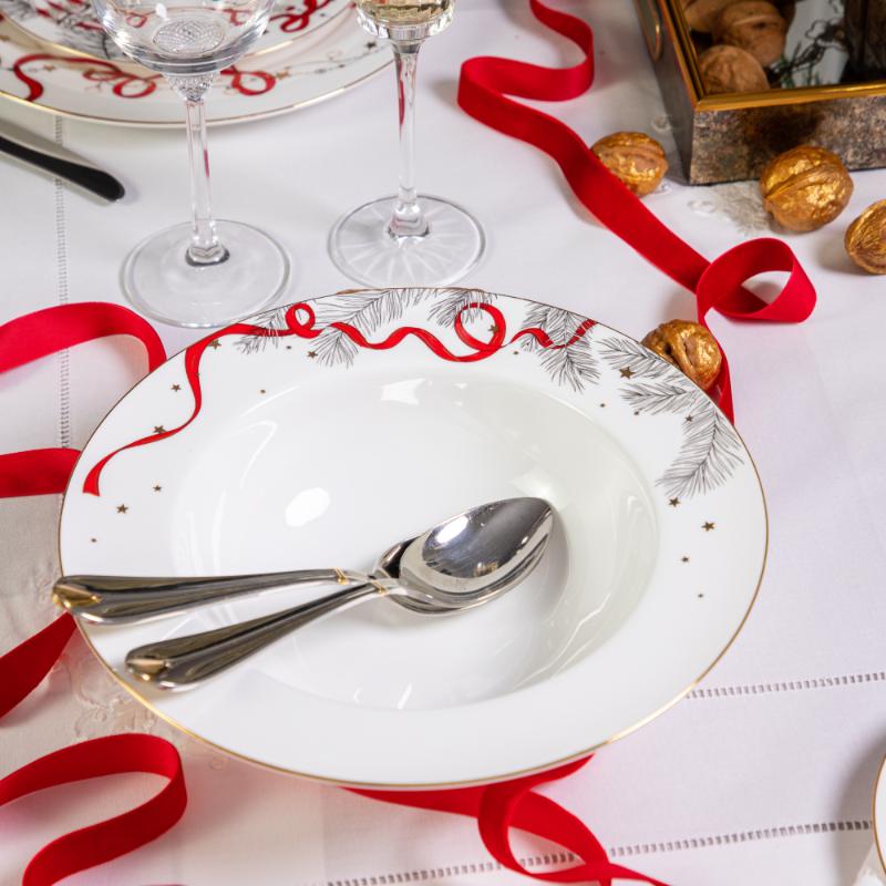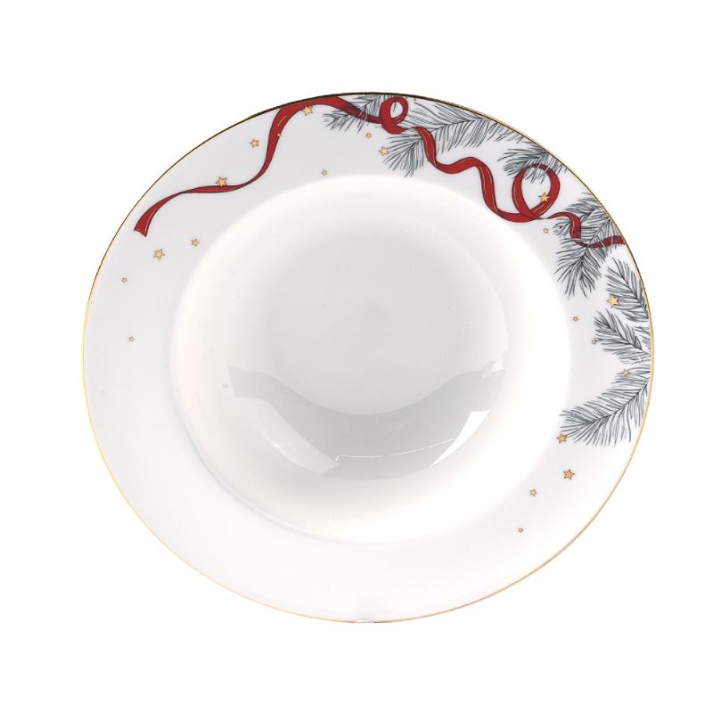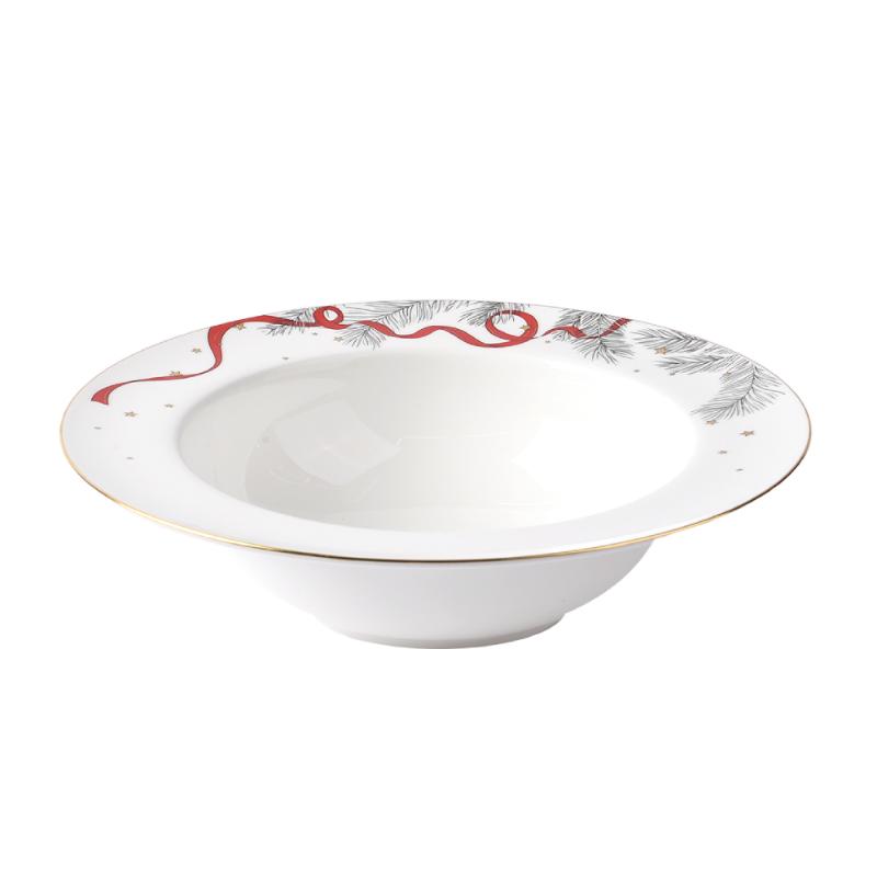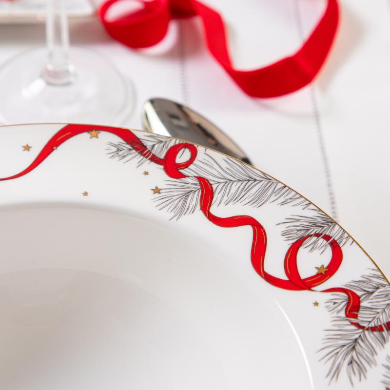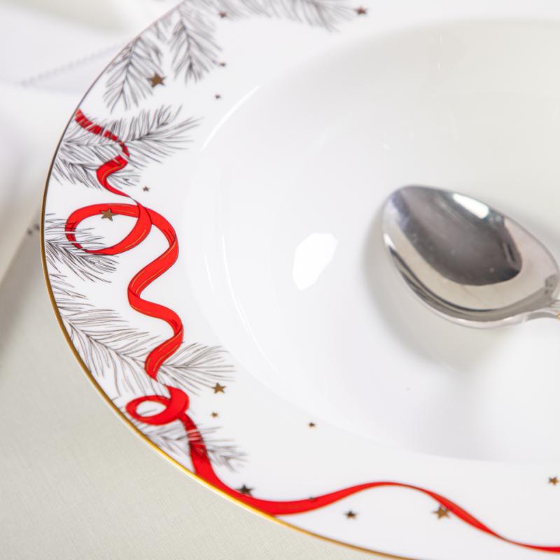 Глубокая форма и продуманные пропорции — миска, которая справится с любым блюдом. Китайский фарфор диаметром 25 см с новогодним декором в карандашной технике: мягкие штрихи, воздушная графика, серебристые акценты. Объём достаточный для большой компании, но сама посуда не выглядит массивной. Белоснежная основа позволяет еде быть главным героем сервировки, а праздничный рисунок создаёт настроение. Упаковка подарочная — можно дарить или оставить себе.