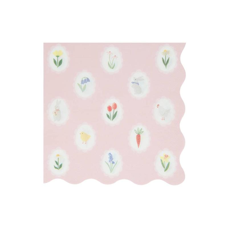 Розовый фон, фарфоровые камеи с весенними цветами и пасхальными символами — такой рисунок напоминает старинный английский текстиль, но при этом легко выбросить после обеда. Трехслойная бумага плотная, не рвется и не промокает. Хорошо смотрится с белой посудой, и одинаково уместна на пасхальном ужине и на весеннем бранче.