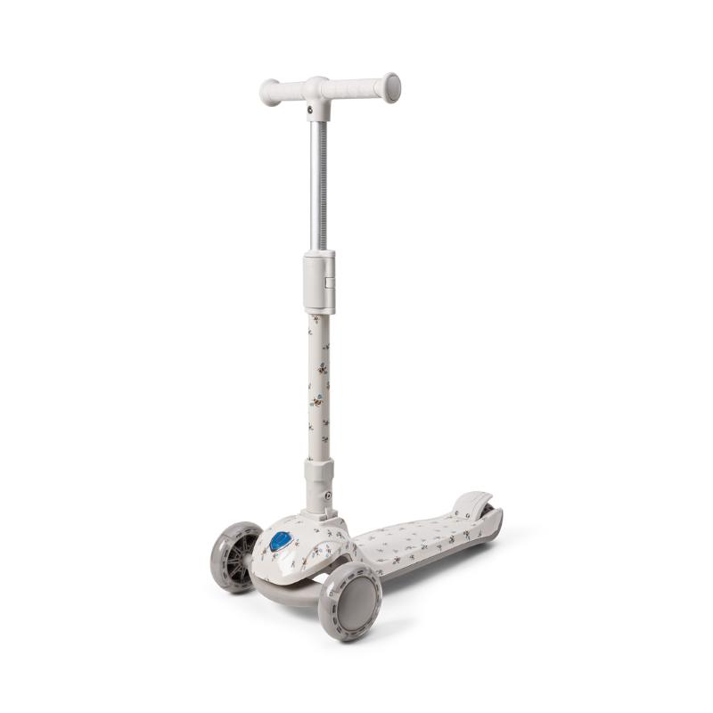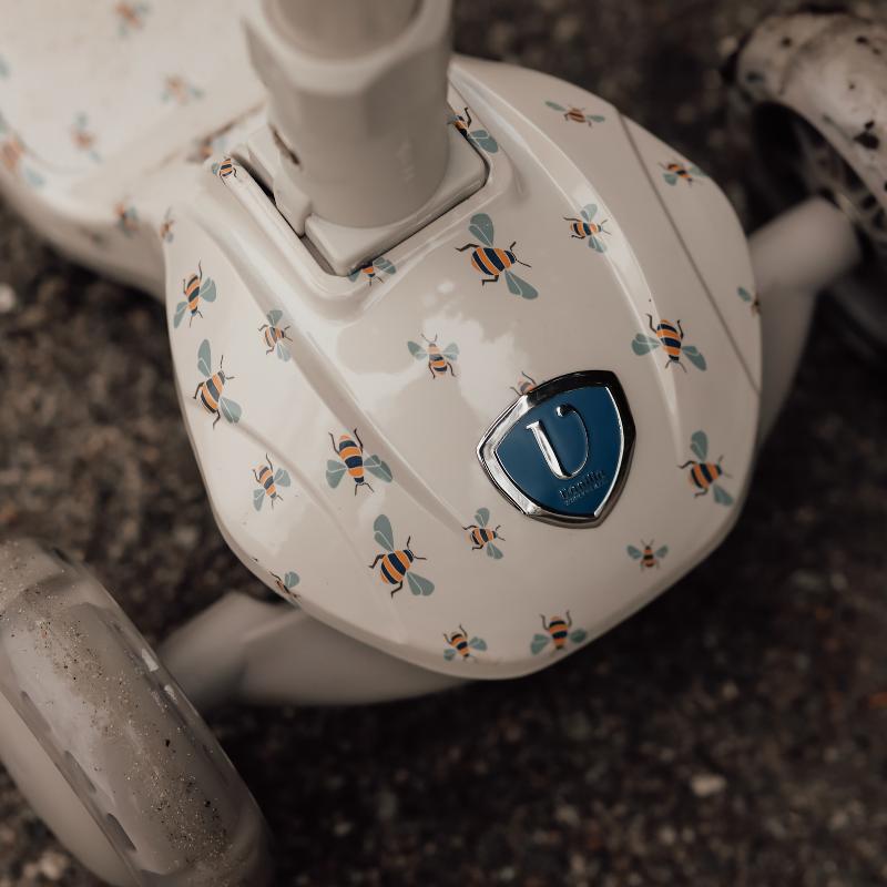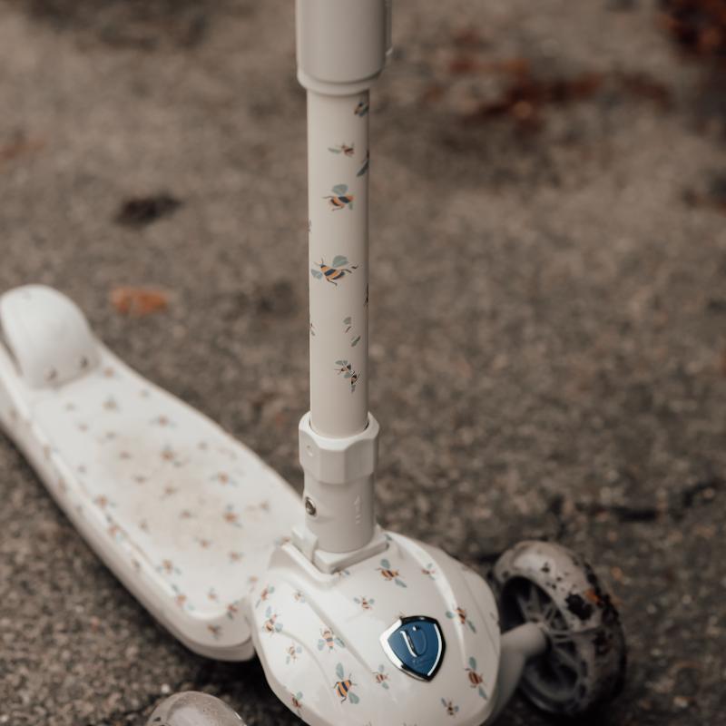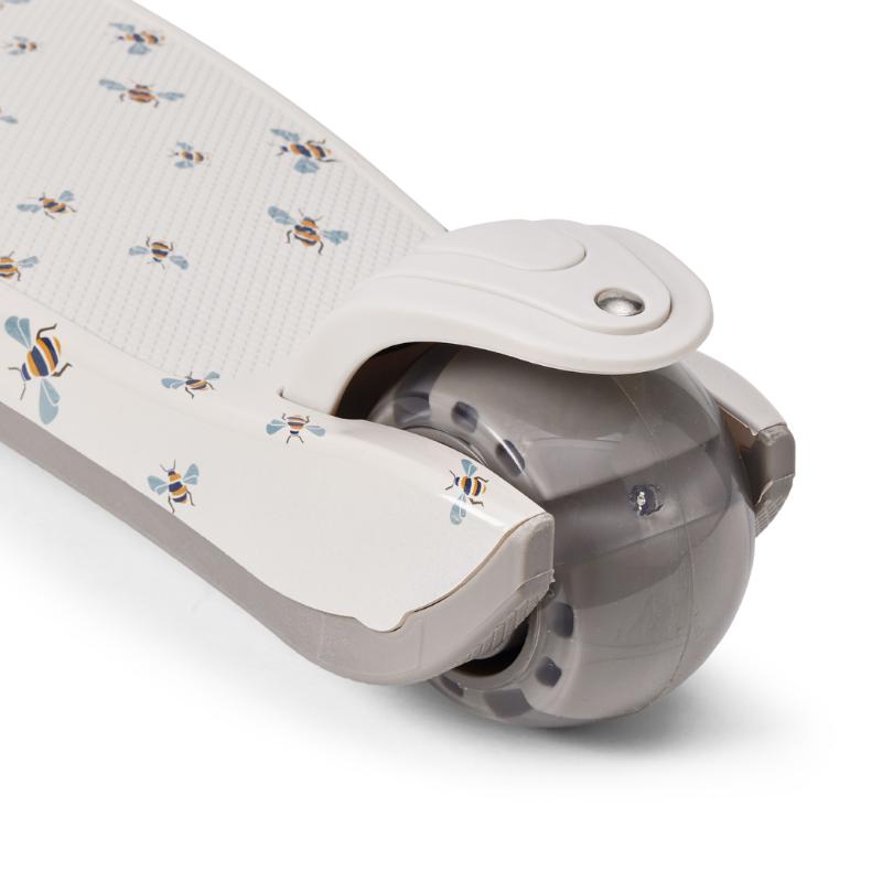 Трехколесный самокат для малышей с устойчивой конструкцией и наклонным управлением. Передние колеса светятся во время движения — это и красиво, и безопасно в темноте. Руль регулируется по высоте, самокат растет вместе с ребенком. Легкий, но крепкий, удобно держать и катить. Украшен принтом пчелки. Подходит для первых самостоятельных прогулок, помогает развивать равновесие и уверенность.