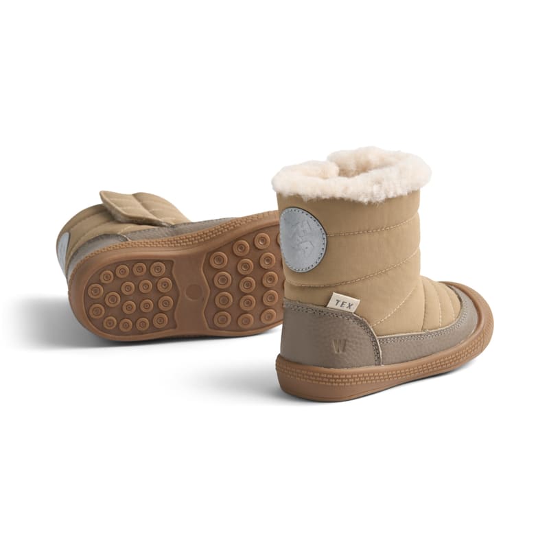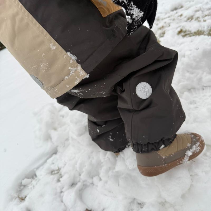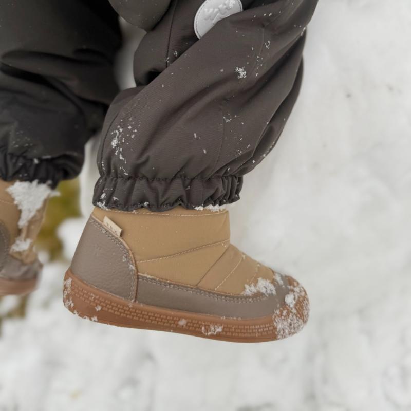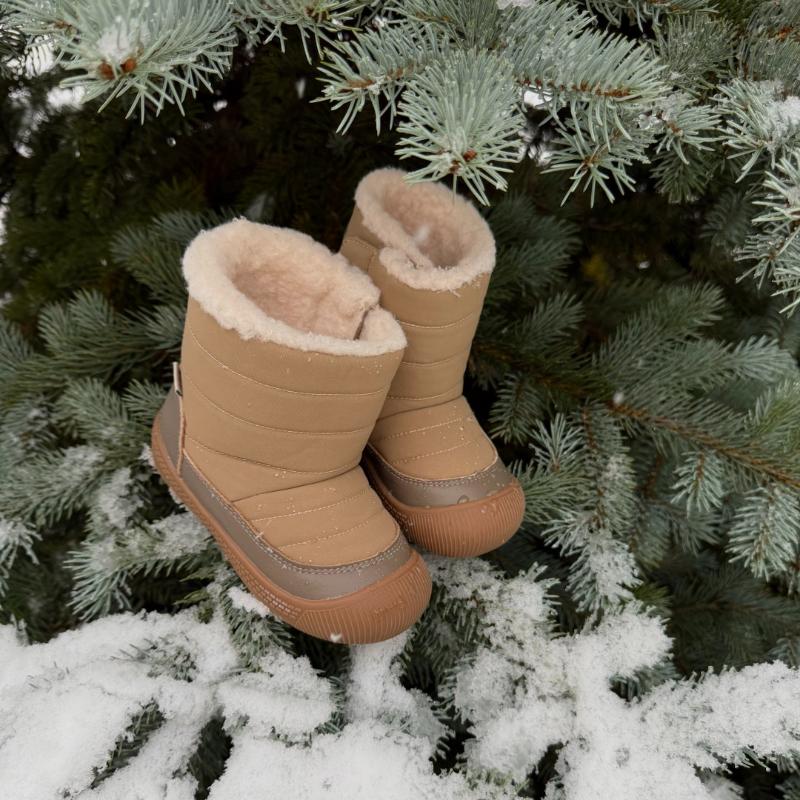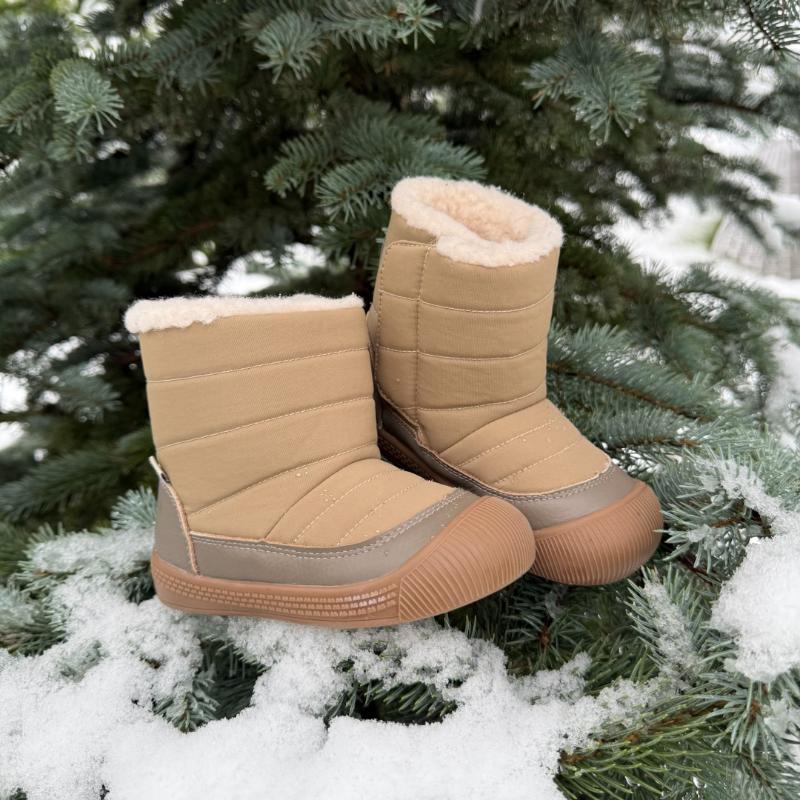 Утеплённые сапоги с высоким голенищем обеспечивают защиту и комфорт даже в холодные и снежные дни. Мягкая шерсть внутри удерживает тепло, а водонепроницаемая мембрана препятствует промоканию. Застёжки на липучках позволяют быстро надеть обувь. Цвет «грецкий орех» — тёплый и нейтральный, он придаёт образу естественность и подходит как для повседневных прогулок, так и для походов в сад или школу зимой.