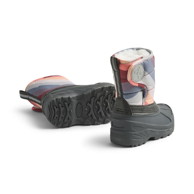 Зимние сапожки с эффектным волнообразным принтом словно нарисованы кистью акварели. Они созданы для комфорта и тепла в холодное время года: внутри — мягкая подкладка, снаружи — прочный непромокаемый материал. Подошва с глубоким протектором не скользит, а липучки фиксируют обувь надёжно и быстро. Утеплённая модель отлично справляется со слякотью и морозом, сохраняя ножки сухими и тёплыми. Уникальный дизайн и удобство в каждой детали — то, что нужно зимой.