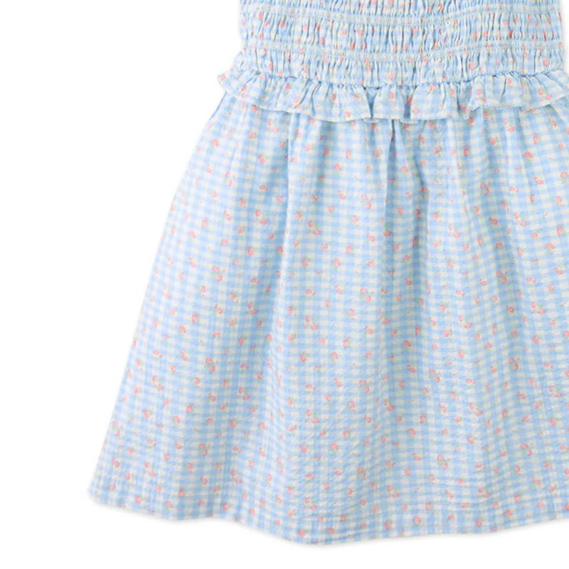 Сарафан в голубую клетку с цветочным рисунком сочетает в себе аккуратность и легкость. Мягко садится по фигуре, создавая спокойный образ на каждый день. Лямки фиксируют посадку, а ткань красиво движется при ходьбе. Подходит для прогулок, отдыха и летних встреч в неформальной обстановке.