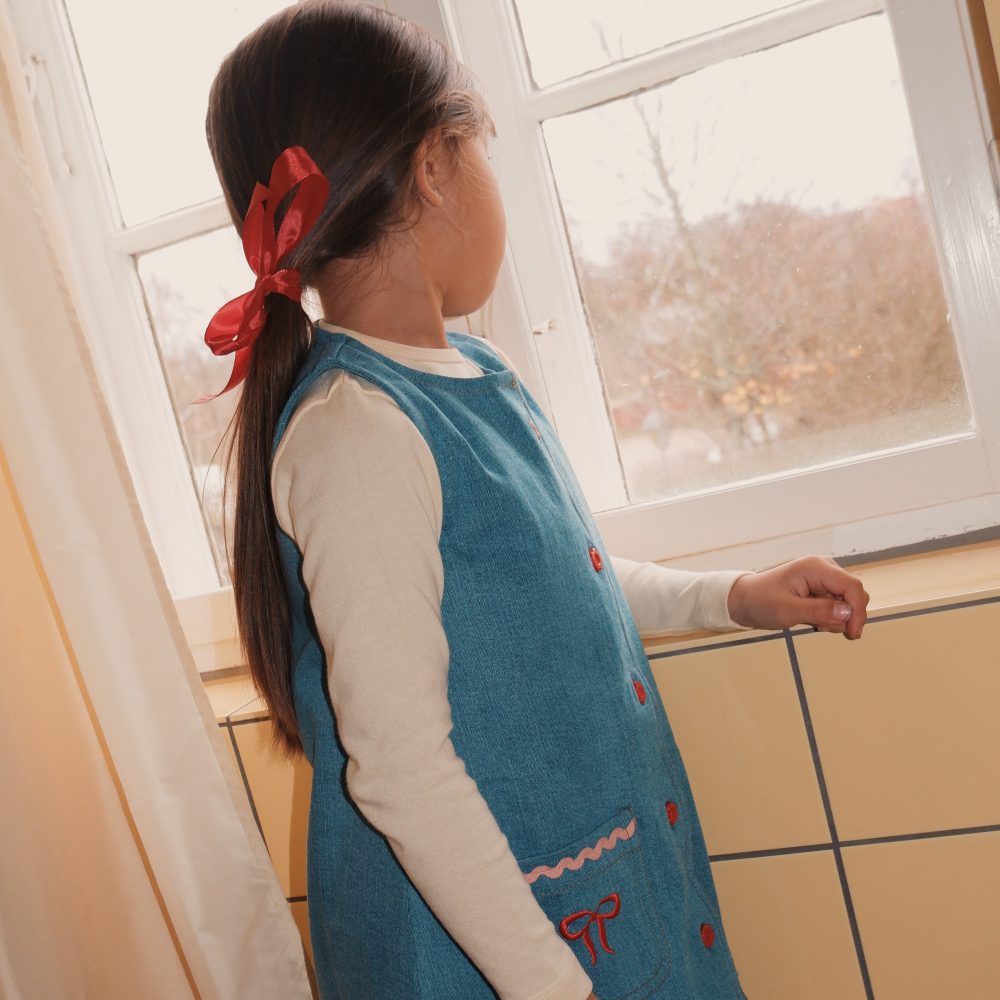 Джинсовый сарафан с принтом бантов. Деним мягкий, не сковывает движений. Бретели регулируются по длине, так что сарафан прослужит несколько сезонов. Карманы достаточно глубокие для мелочей. Банты на светло-голубом фоне добавляют романтики. Сарафан можно носить с водолазками, блузами и свитшотами. Подходит для весны, лета и тёплой осени.