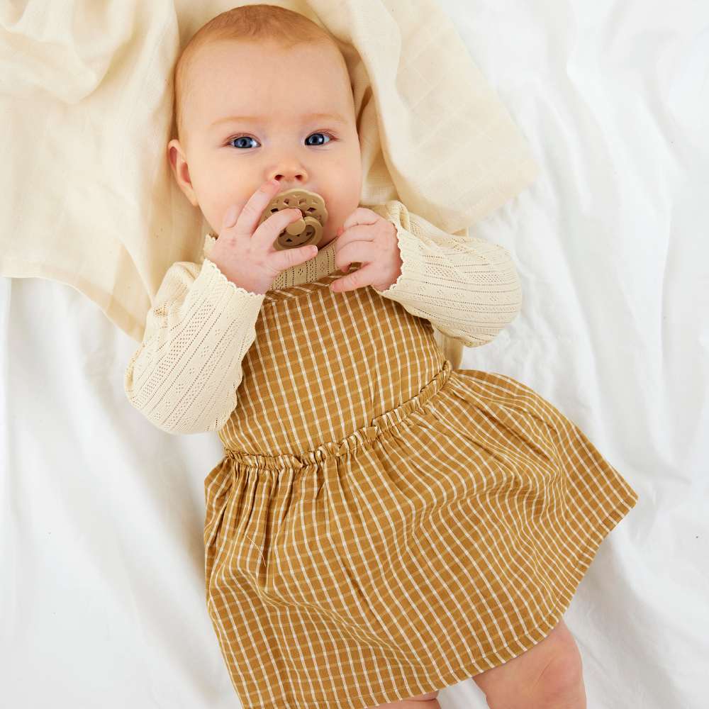 Этот сарафан в карамельную клетку — прекрасный выбор для теплых дней. Легкий и воздушный, он идеально подойдет для прогулок и летних игр. Клетчатый узор придает ему стильный вид, а практичный фасон позволяет ребенку чувствовать себя комфортно. Сарафан легко комбинируется с различными аксессуарами и обувью, создавая милый и элегантный образ. Он станет любимым элементом в гардеробе малыша благодаря своему универсальному стилю и удобству.