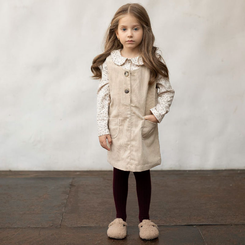 Нежный кремовый цвет придаёт сарафану утончённость, а фактурный вельвет добавляет уюта и тепла. Он прекрасно подойдёт для прохладной погоды — сочетается с рубашками, водолазками и плотными колготками. Удобный крой не стесняет движений и остаётся комфортным в течение дня. Универсальный оттенок делает сарафан подходящим как для повседневной носки, так и для праздников. Простая, но стильная вещь, которая легко впишется в гардероб и будет радовать своей практичностью.