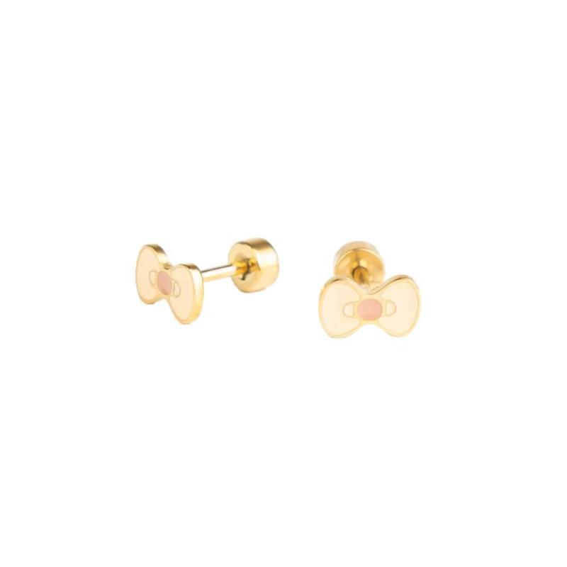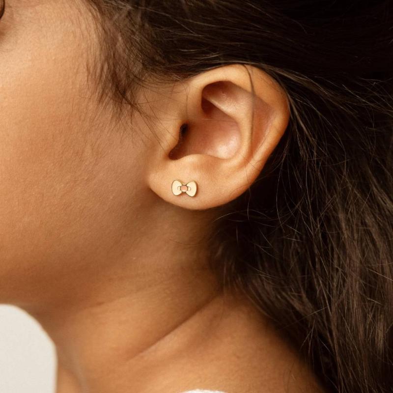 Два комплекта изящных бантиков с надёжным винтовым замком. Из медицинского сплава — нержавеющей стали с 18k золотым покрытием, полностью гипоаллергенного материала без никеля, свинца и меди. Вот почему он используется в детских украшениях: безопасность кожи на первом месте. Винтовая застёжка комфортна для круглосуточного ношения и не травмирует мочку. Яркие цвета, современный дизайн. Размер 0,6-0,8 мм.