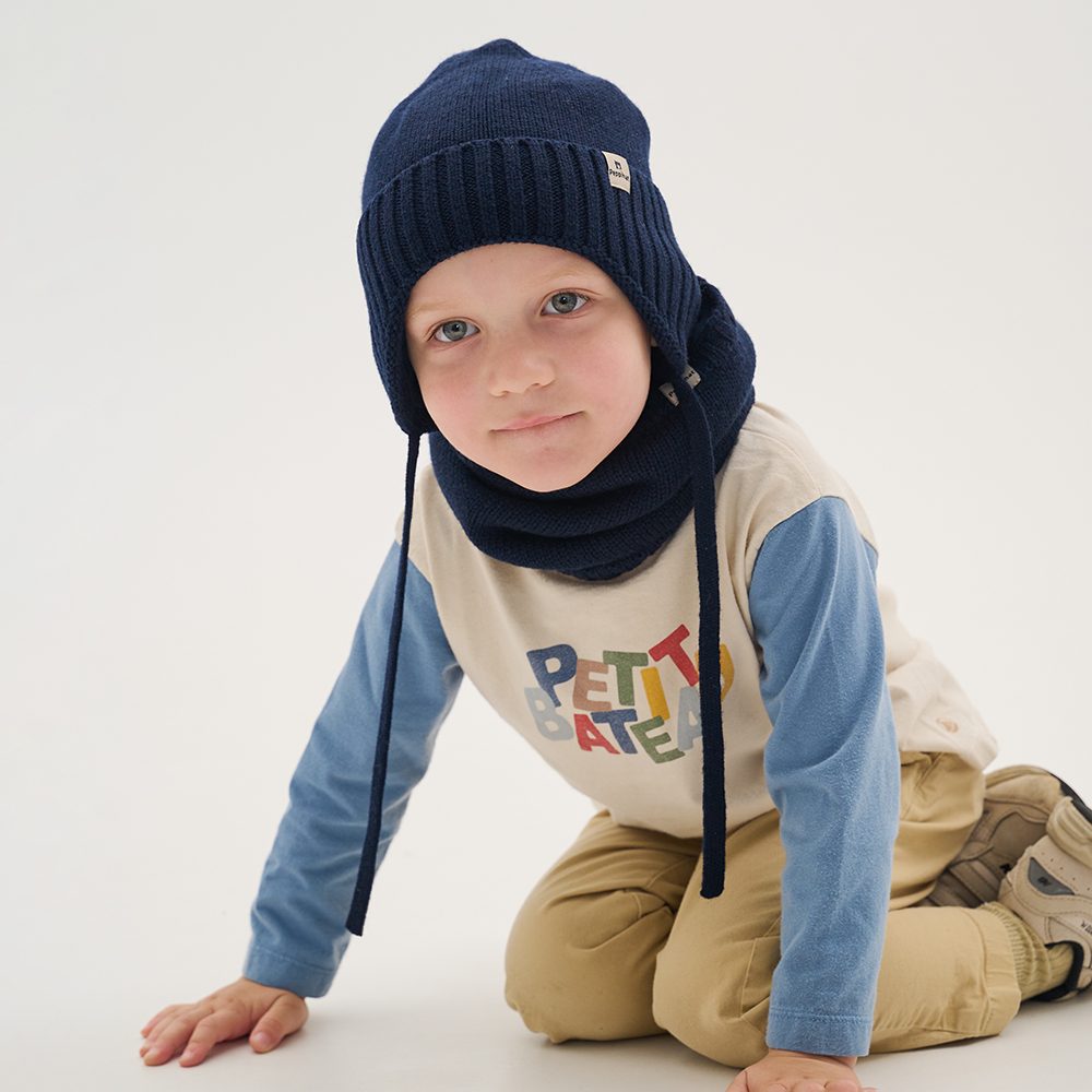 Синяя шапка обеспечивает плотное прилегание к голове и защиту ушей и лба от ветра и прохлады. Внутренний слой мягкий и тёплый, внешний сохраняет форму и тепло. Глубокий синий оттенок универсален и гармонирует с любым верхом, придавая образу сдержанную выразительность.