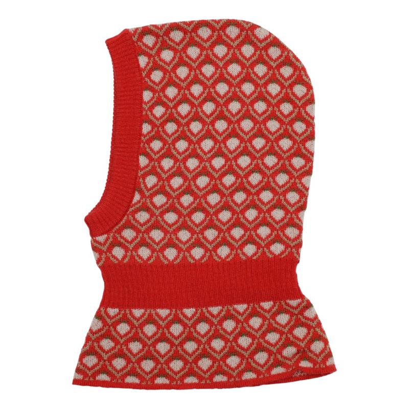 Полная защита в ягодном стиле! Эта шапка-шлем с узором клубничных сот в красно-ягодных тонах защищает голову, шею и ушки одновременно. Органическая пряжа мягкая и дышащая, поэтому ребенок не вспотеет даже во время снежных баталий. Шлем легко надевается через голову и не съезжает при беге. Датский дизайн встречается с максимальной практичностью – идеальная защита для морозных дней.