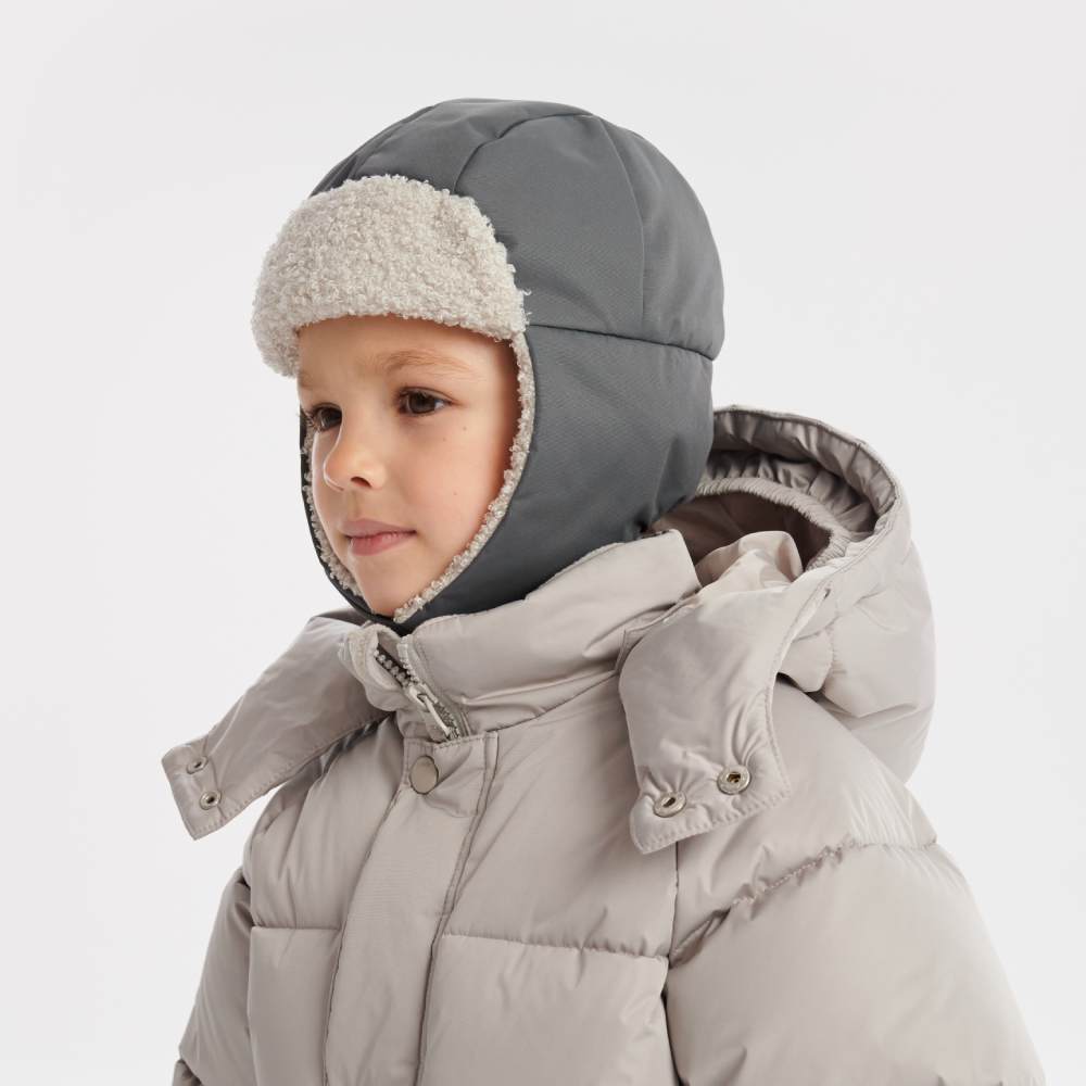 Стильная и практичная шапка-ушанка в тёмном оттенке сохраняет тепло и защищает от ветра. Мягкая подкладка окружает голову уютом, а завязки фиксируют шапку надёжно. В ней ребёнку удобно играть, бегать и кататься, а морозные прогулки становятся тёплыми и комфортными, без ощущения холода.