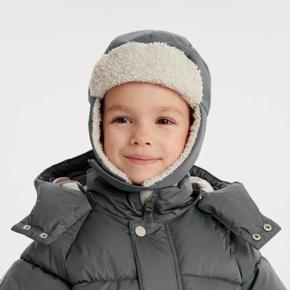 Эта шапка надёжно согревает голову и уши малыша даже в морозный день. Тёмный оттенок делает её практичной, а мягкая подкладка сохраняет тепло. Удобные завязки фиксируют шапку, не давая сползать. В ней прогулки становятся комфортными и тёплыми, а ребёнок чувствует себя уютно и защищённо.
