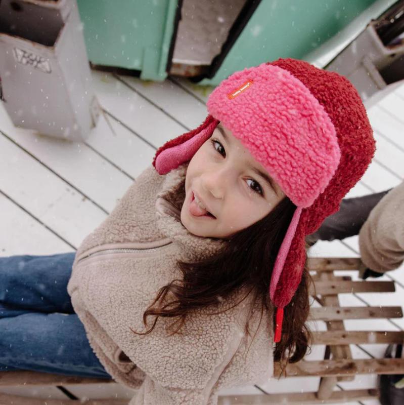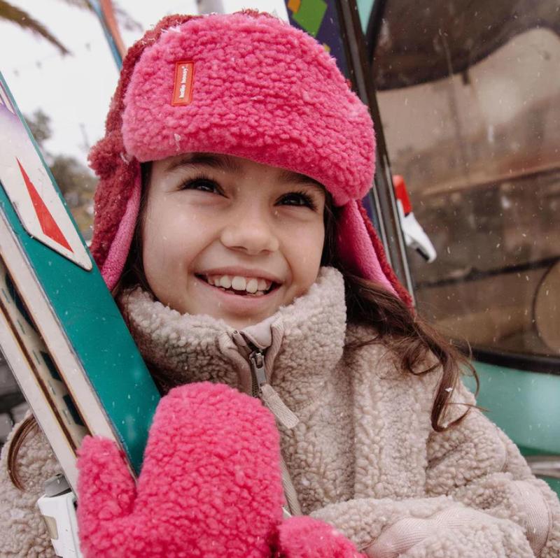 Вишневая глазурь в исполнении Hello Hossy — это глубокий, насыщенный оттенок, который выделяется на фоне зимней белизны. Меховая шапка-ушанка с тедди-эффектом выглядит объемно и роскошно, создавая образ героини зимней сказки. Двухцветный дизайн добавляет глубины, а мягкая флисовая подкладка внутри обеспечивает тепло даже в самые морозные дни. Ушки можно опустить для дополнительной защиты или завязать наверху для более легкого образа. Шапка идеально сочетается с варежками Heaty Tara, создавая гармоничный комплект.