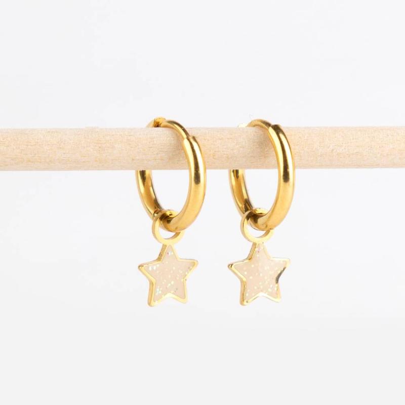 Два сияющих шарма-звёздочки для создания собственных комбинаций на браслетах и колье. Выполнены из медицинской нержавеющей стали с 18k золотым PVD-покрытием — этот материал ценится за полную безопасность для детей, ведь в нём нет никеля, свинца и меди. Гипоаллергенны, устойчивы к царапинам и потускнению. Можно носить 24/7, даже не снимая на ночь. Размер штифта 0,8 х 10 мм.