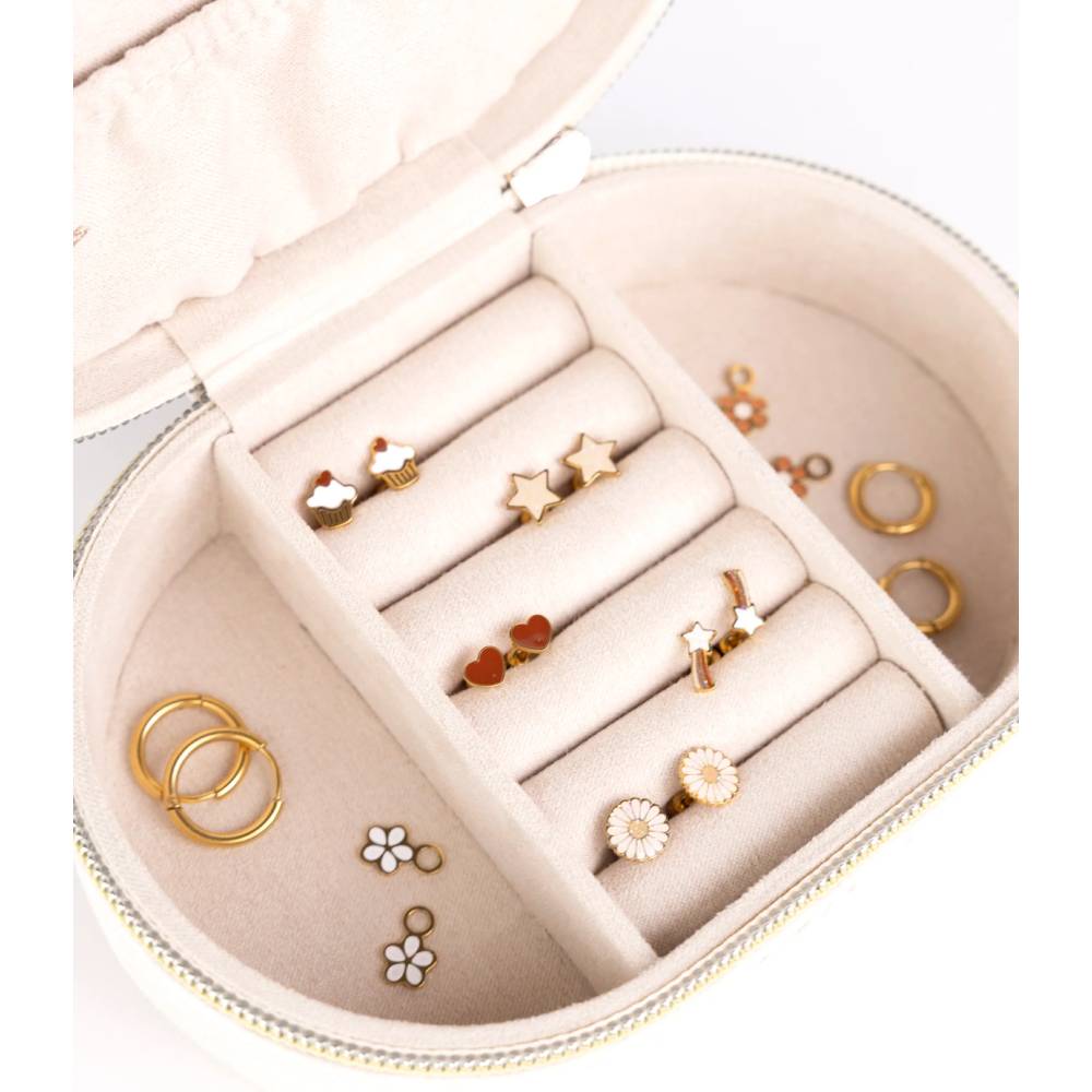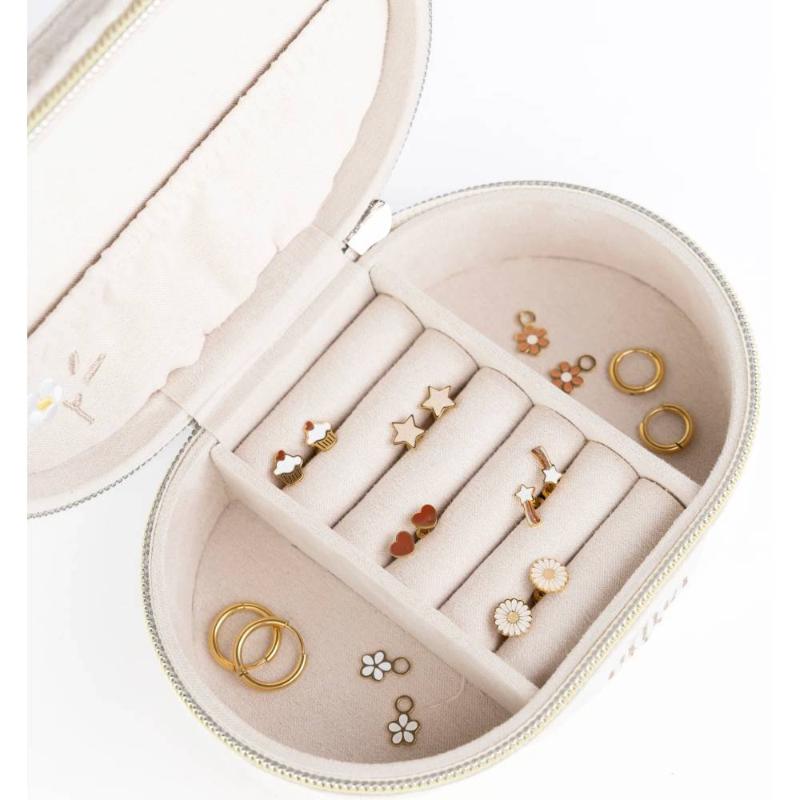 Романтичная шкатулка с узором из жемчужных маргариток бережно хранит детские или взрослые сокровища. Продуманные отделения помогут организовать серьги, браслеты и шармы — каждому украшению своё место. Качественное исполнение и нежный дизайн превращают хранение в удовольствие. Компактный размер удобен для детской комнаты или путешествий, подойдет как упаковка подарка для мамы. Крышка надёжно закрывается, защищая содержимое от пыли.