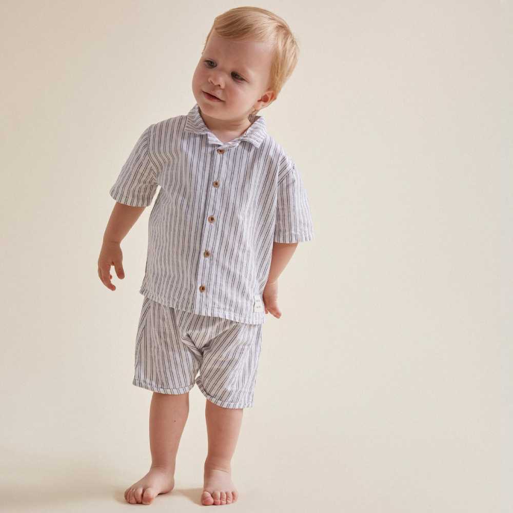 Эти шорты с белыми полосками – идеальный выбор для жарких дней. Легкий и воздухопроницаемый материал обеспечивает комфорт в течение всего дня, а эластичный пояс подстраивается под фигуру ребенка, обеспечивая надежную посадку. Простота в дизайне позволяет легко сочетать шорты с любыми футболками и рубашками, создавая стильный и удобный образ. Эти шорты идеально подходят для прогулок, игр и активных мероприятий на свежем воздухе.