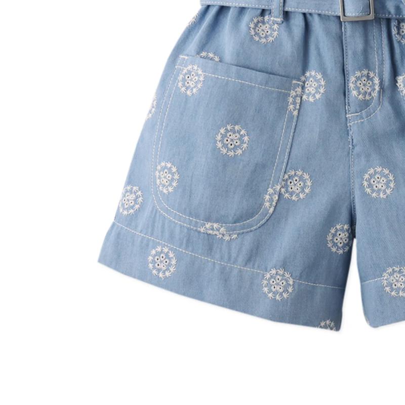 Джинсовые шорты с вышивкой — интересный акцент в повседневном гардеробе. Модель держит форму и при этом остается удобной для активных прогулок. Классическая посадка дополнена аккуратным поясом и функциональными деталями. Хорошо сочетаются с футболками, рубашками и легкими топами.
