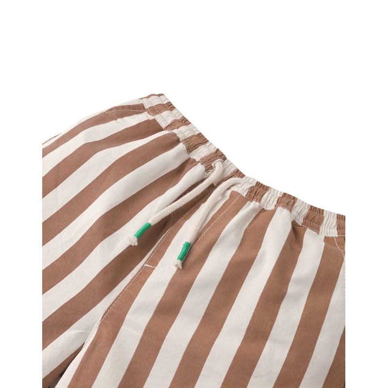 Шорты с ореховыми полосами — это летний must-have для каждого активного ребёнка. Ореховый цвет в сочетании с тонкими полосками создаёт стильный и модный образ. Шорты изготовлены из лёгкой ткани, которая не стесняет движений, обеспечивая максимальный комфорт в жаркие дни. Удобная посадка и эластичный пояс гарантируют хорошую фиксацию, а стильный дизайн делает эти шорты отличным выбором для прогулок и летних приключений.