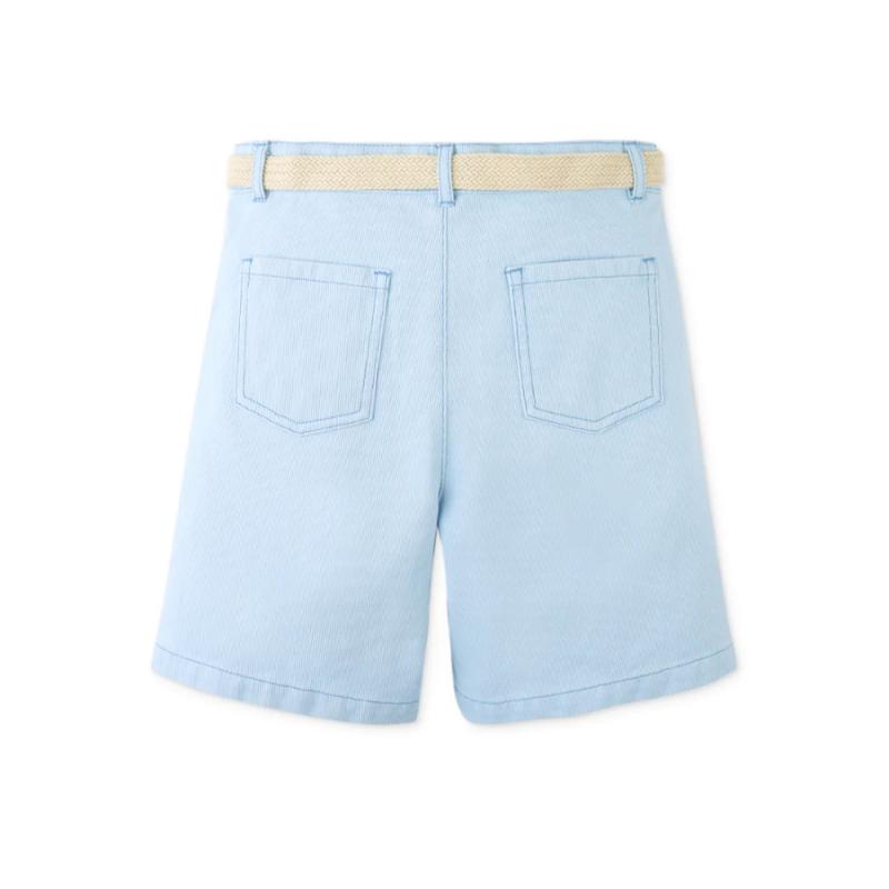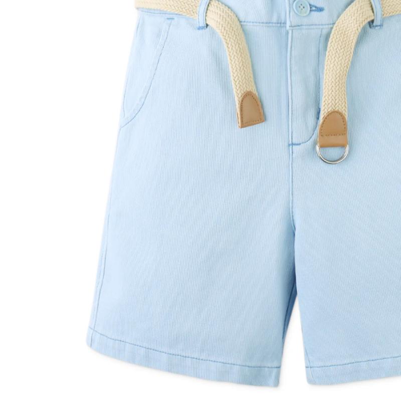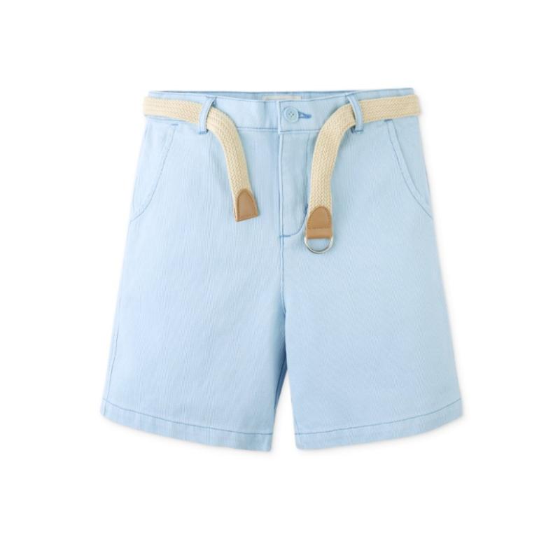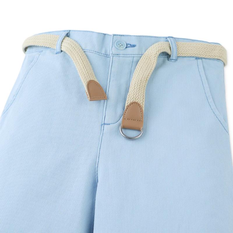 Голубые шорты с поясом создают аккуратный и легкий образ на каждый день. Свободный крой не сковывает движения, а пояс помогает настроить удобную посадку. Модель подходит для прогулок и активного отдыха. Легко сочетается с футболками, рубашками и поло в светлой или контрастной гамме.