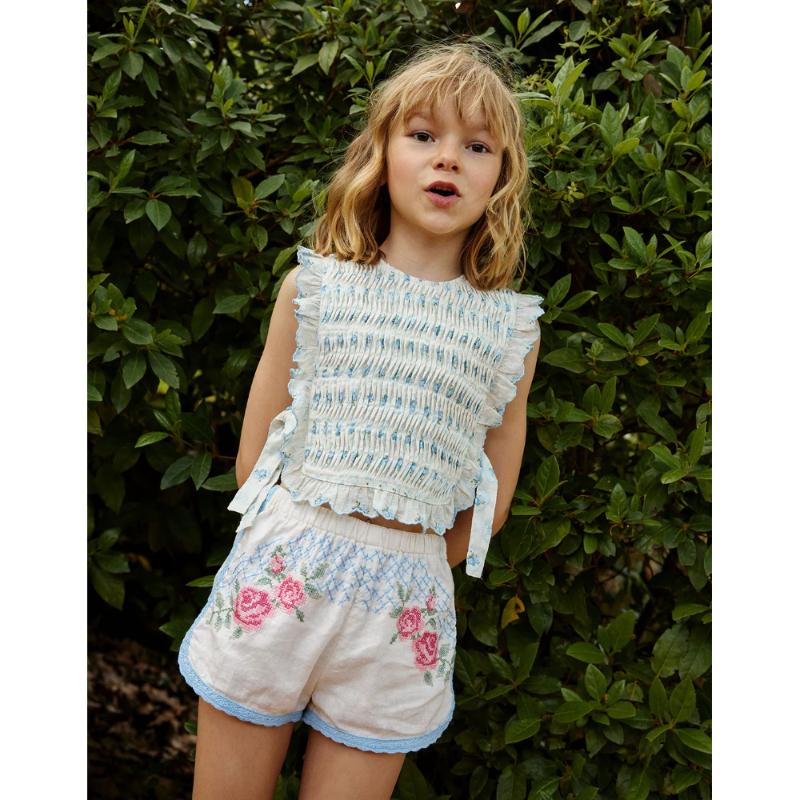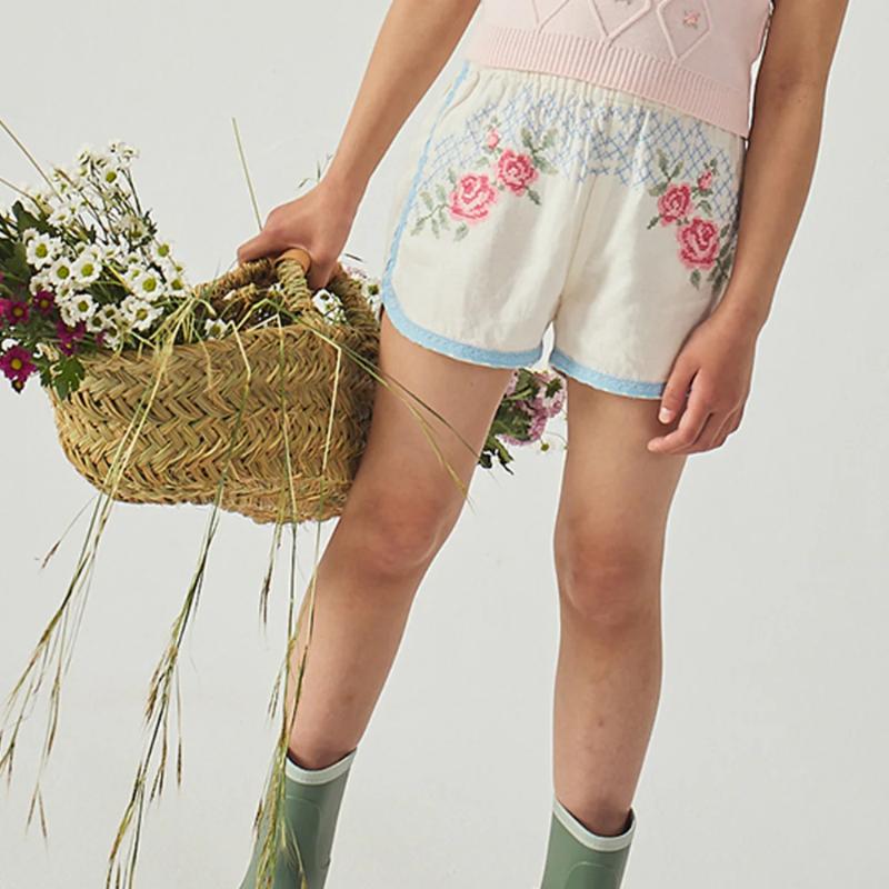Шорты с вышивкой в виде роз выглядят аккуратно и выразительно. Свободный крой позволяет двигаться без ограничений, а пояс на резинке мягко фиксирует посадку. Детали выполнены деликатно и не перегружают образ. Модель подойдет для прогулок, отдыха и сочетаний с базовыми топами и рубашками.