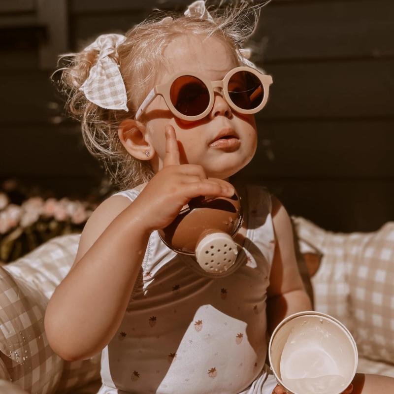Прочные детские очки с поляризованными линзами из TR90. Эффективная защита от солнечных лучей и бликов на воде. Переработанный материал оправы гибкий и долговечный. Не ломаются при падениях, гнутся и возвращаются в форму. Удобно сидят на детском лице. Сочный клубничный принт радует детей. Идеальны для пляжа, бассейна и летних прогулок.