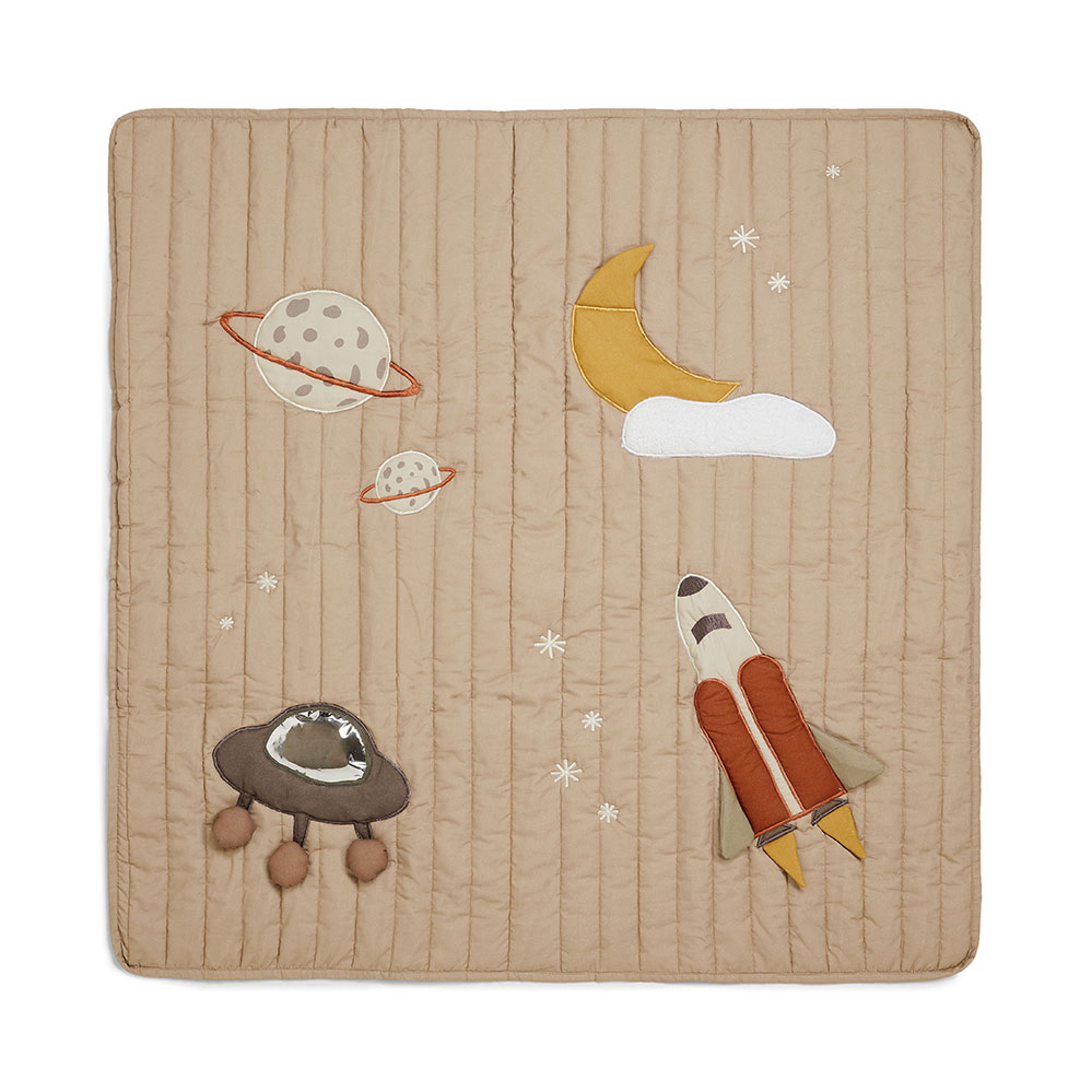 Квадратный коврик с космическим принтом превращает игровую зону в отдельную вселенную. Размер 110×110 см даёт достаточно места для игр, чтения или отдыха. Стёганая поверхность мягкая и тёплая, защищает от холодного пола. Коврик легко складывается и хранится. Подходит для дома и прогулок на природе, когда нужно обустроить комфортное место для ребёнка.