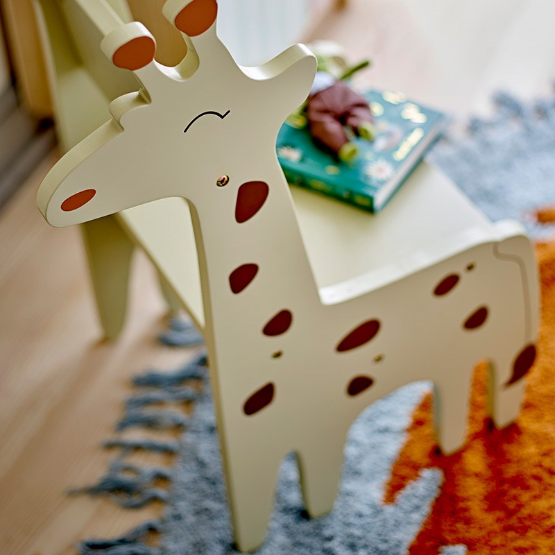 Стул-жираф Ibber сочетает в себе функциональность и игру. Серая палитра и оригинальный силуэт с «рожками» создают уютный и весёлый образ. Он станет удобным местом для занятий и украшением интерьера, пробуждая фантазию ребёнка.