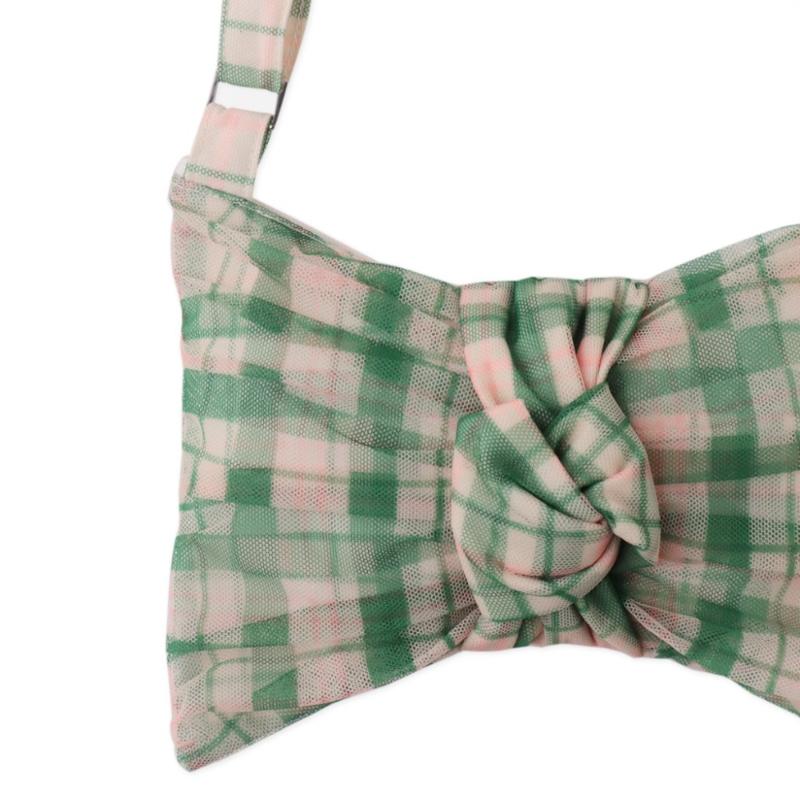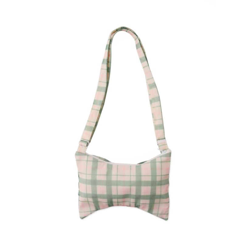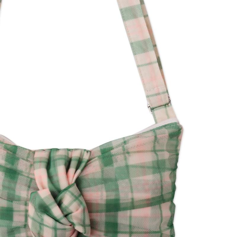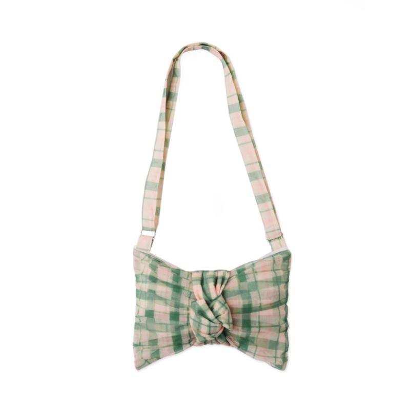 Сумка в виде банта из зеленой клетки выглядит выразительно и аккуратно. Удобный размер позволяет взять с собой необходимые мелочи. Длина ручки регулируется. Клетчатый рисунок добавляет образу свежести и подходит для повседневных прогулок.
