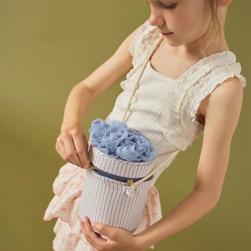 Сумка в виде букета в бежево-голубых оттенках создает мягкое и нежное настроение в образе. Компактный размер позволяет удобно носить необходимые мелочи. Ручки удобны для детской руки и не натирают. Декоративное оформление делает модель акцентной и добавляет образу легкости. Подходит для прогулок и праздничных выходов.