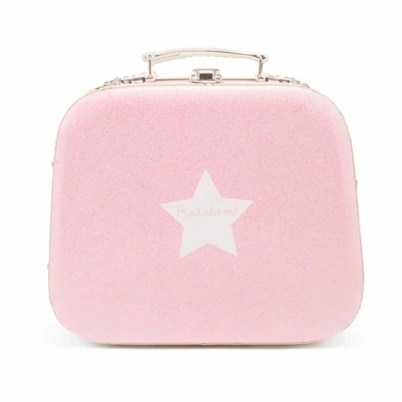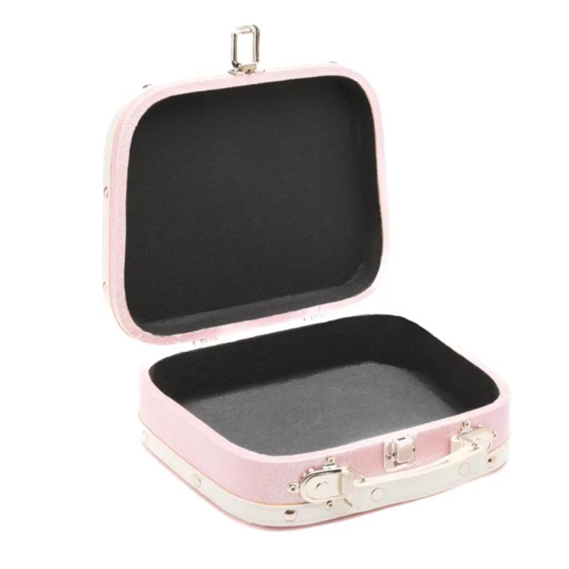 Блестящий розовый чемоданчик из дерева и экокожи — безопасное место для маленьких сокровищ. Диаметр 25 см вмещает украшения, памятные вещи и мелочи, а искрящийся дизайн превращает его в декоративный элемент комнаты. Прочная конструкция гарантирует долгий срок службы. Ручка удобна для переноски — можно взять с собой куда угодно. Сочетание функциональности и эстетики делает его желанным подарком.