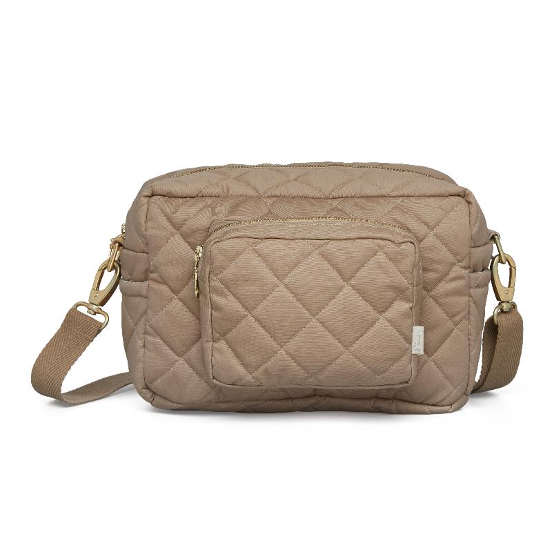 Компактная сумка для коротких прогулок, когда не нужно брать с собой половину дома. Карамельный оттенок универсален и подходит к любому стилю. Внутри достаточно места для самого необходимого: подгузников, влажных салфеток, бутылочки. Стёганая текстура добавляет структуру, качественная фурнитура выдерживает ежедневное использование. Эту сумку можно использовать и после того, как малыш подрастёт — дизайн настолько нейтральный.