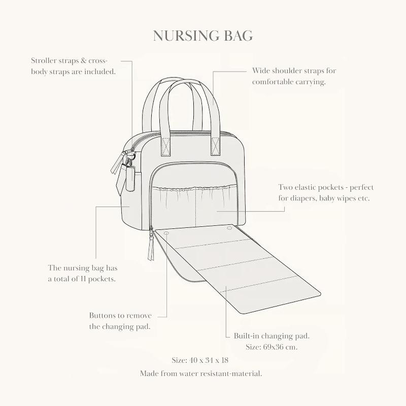 Дополнительная информация: вместительная сумка для кормления, в большом наружном кармане матрасик для пеленания, который можно отстегнуть и хранить другие вещи. В основном отделении сумки есть двойной карман с утепленной подкладкой. Сумка оснащена ремешками разной длины, что позволяет легко переносить сумку через плечо. Изготовлен из 100% переработанного полиэстера, который легко стирается и не имеет покрытия PFA.