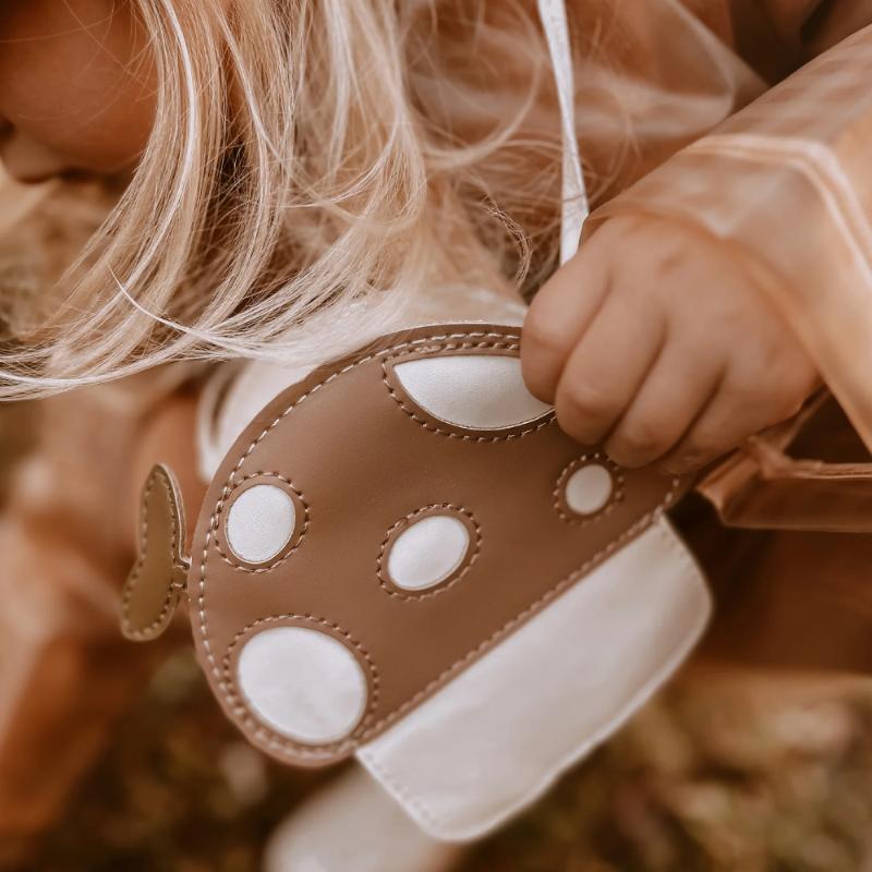 Уютная тканевая сумка с изображением грибочка. Ванильный фон с коричневыми акцентами создает природный образ. Легкая и мягкая, идеальна для детских ручек. Удобная ручка позволяет носить сумку в руке или на плече. Внутреннее пространство вмещает небольшие игрушки, перекус, мелочи. Натуральная ткань экологична, безопасна. Подходит для прогулок в парке, поездок, игр. Легко стирается, сохраняет форму после стирки. Милый дизайн привлекает внимание. Учит ребенка самостоятельности и ответственности за свои вещи.