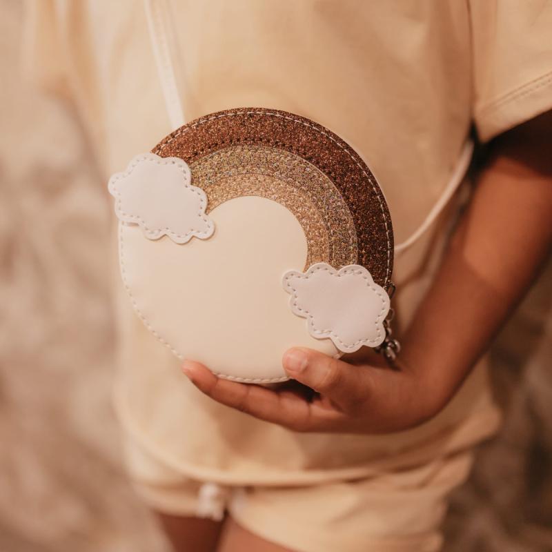 Волшебная тканевая сумочка ванильного цвета с золотой радугой. Легкая и компактная, не обременяет детские плечи. Мягкая ручка комфортна для маленькой ладони. Внутри помещаются маленькие сокровища, украшения, мелкие игрушки. Натуральный текстиль приятен, не вызывает раздражений. Золотистый акцент радуги добавляет праздничности. Подходит для особых случаев, походов в гости, игр. Можно стирать в машине, быстро сохнет на воздухе. Развивает чувство стиля и самостоятельность. Красивый аксессуар для юных принцесс.
