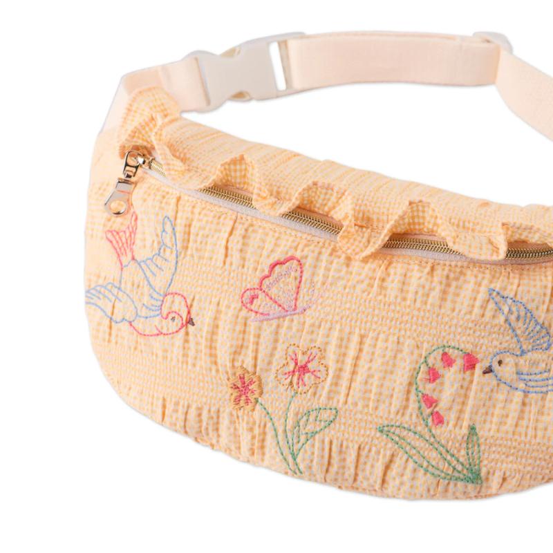 Поясная сумка в абрикосовом оттенке с вышивкой выглядит аккуратно и современно. Удобное крепление позволяет носить ее на талии и оставляет руки свободными. Вышивка добавляет декоративный акцент и делает модель выразительной. Подходит для прогулок и активных дней. Помогает удобно хранить мелкие вещи под рукой.