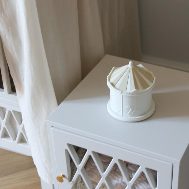 Сказочный светильник-карусель создаст в детской комнате атмосферу волшебства и уюта! Мягкий рассеянный свет идеален для вечерних ритуалов перед сном и ночных кормлений. Элегантный дизайн в форме карусели с нежными деталями станет изюминкой интерьера. Выполнен из качественных безопасных материалов в спокойных кремовых тонах. Скандинавская эстетика сочетает функциональность с красотой, превращая светильник в предмет искусства. Пусть каждый вечер малыша будет наполнен теплом и спокойствием.