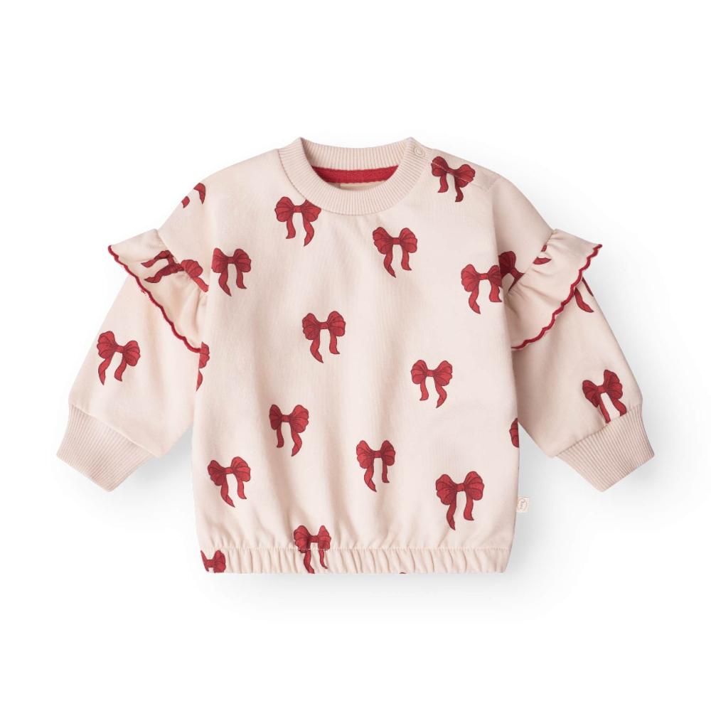Мягкий свитшот в нежно-розовом цвете с очаровательным принтом из бантиков - для романтичных натур! Удобный крой и качественная ткань делают эту вещь идеальной для активных игр и отдыха. Милый принт добавляет настроения, а универсальный фасон легко комбинируется с любыми брючками или юбками. Этот свитшот станет любимой вещью для прогулок, детского сада и домашнего уюта.