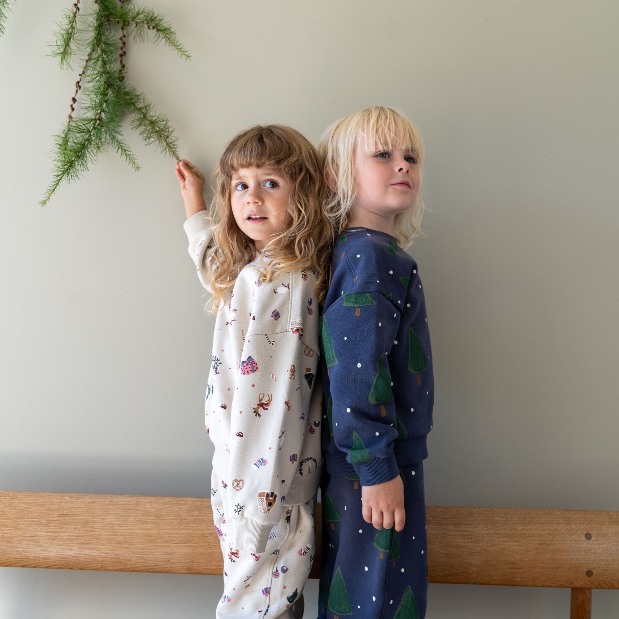 Свитшот в серо-голубом оттенке с принтом, будто сошедшим с зимней сказки: олени, ёлочки и лесные узоры создают атмосферу уюта и волшебства. Свободный крой, мягкий хлопковый флис и удлинённая спинка — идеально для прохладных дней. Носится с джинсами, леггинсами или под юбку. Праздник чувствуется в каждой детали.