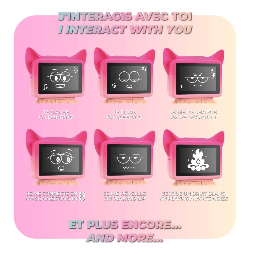 Этот яркий гаджет — настоящее мини-шоу: будильник-колонка с динамичным дизайном, который оживает при звуке музыки или сигнала. Встроенный 3 Вт динамик воспроизводит любимые треки, белый шум или природные звуки. Сменные силиконовые ушки (лиса или панда), анимации на LCD-дисплее, быстрая зарядка через USB-C и продолжительная автономность — стильный и весёлый старт утра.