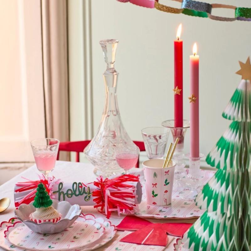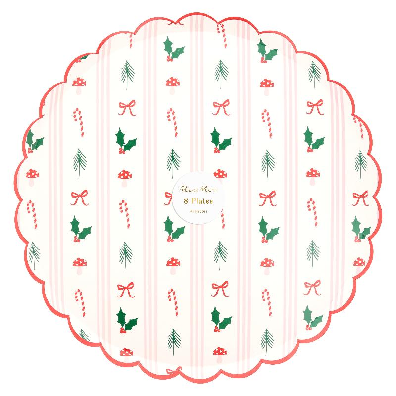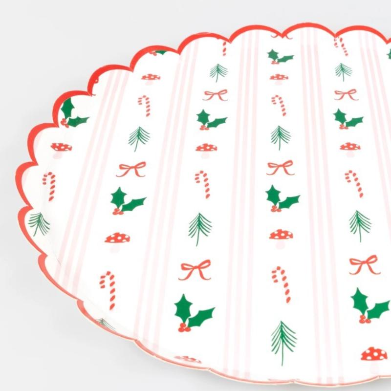 Большие тарелки с рождественским узором украсят стол нежными полосами, яркими акцентами и лёгким блеском. Продуманный дизайн создаёт атмосферу уютного праздника, а нарядные края добавляют сервировке изысканности. Подойдут для основных блюд, закусок и праздничных угощений, делая подачу по-настоящему эффектной.