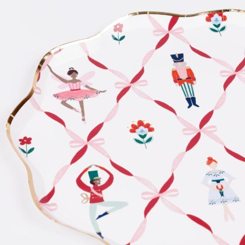 Классическая сказка на праздничном столе! Восемь больших тарелок с иллюстрациями легендарного Щелкунчика переносят в мир балетной классики. Яркие детальные рисунки создают торжественную атмосферу. Качественная бумага выдерживает горячие и холодные блюда. Идеальны для рождественских ужинов, новогодних вечеринок или тематических празднований. Пусть каждое блюдо подаётся с магией вечной рождественской истории!