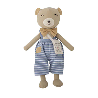 Текстильная игрушка в виде медвежонка с авторским принтом в зелёную полоску понравится вашему ребёнку своим необычным дизайном. Милый и приветливый медвежонок из натурального хлопка станет верным спутником и хорошим другом. Экологичный наполнитель прекрасно держит форму и не комкуется после стирки. Оригинальные детали костюма в виде жилетки с бабочкой делают мишку еще более привлекательным и интересным для игры. Замечательный мягкий медвежонок станет хорошим подарком для малыша и родителей.
