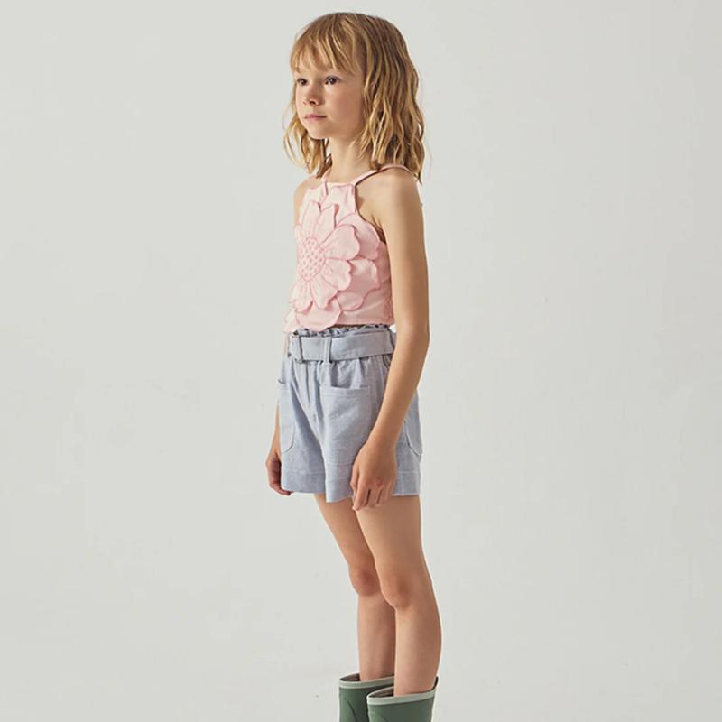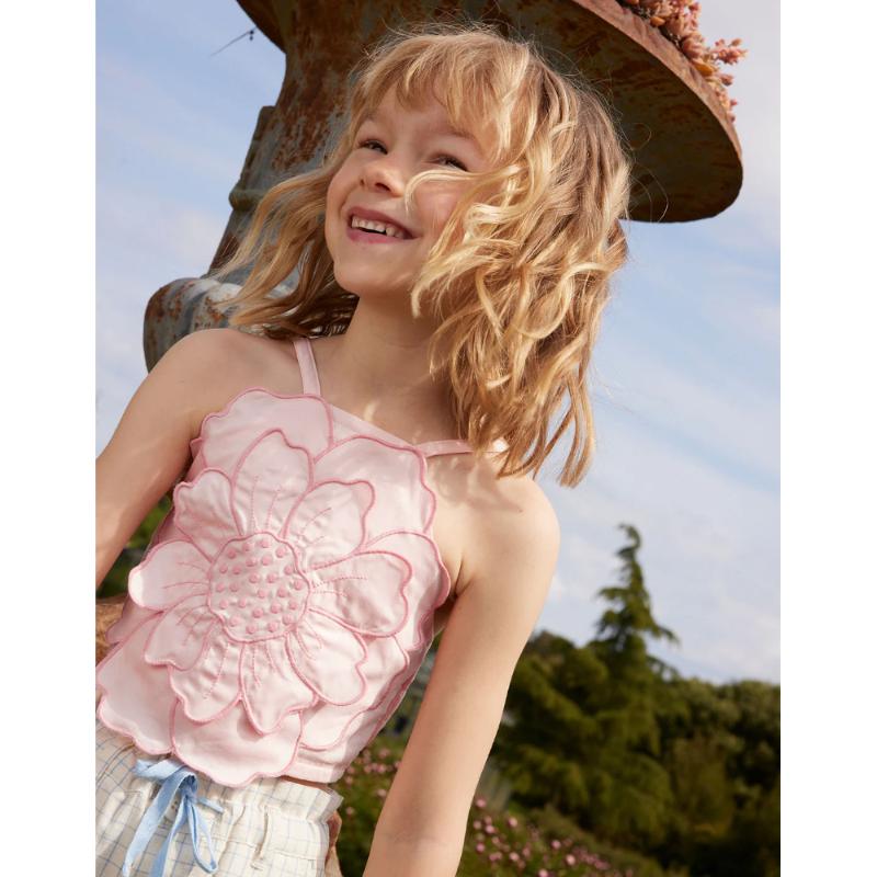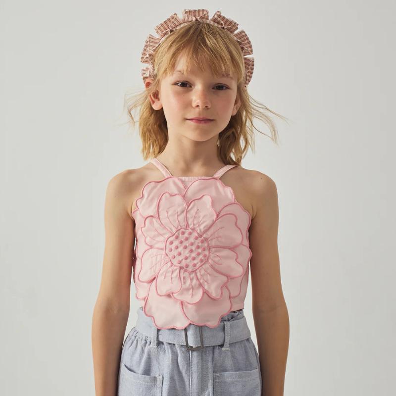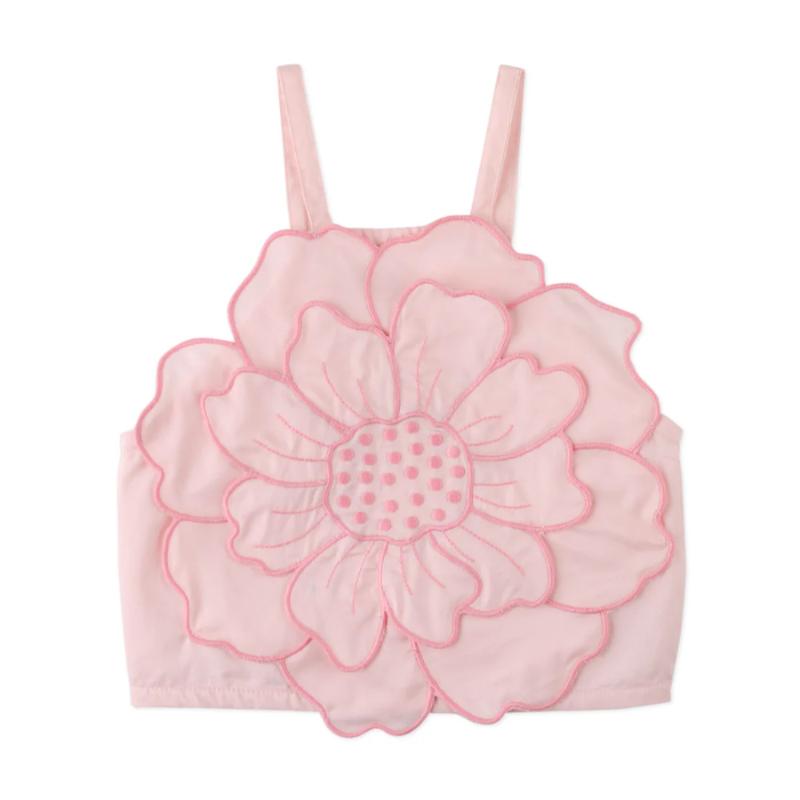 Нежный топ с акцентной аппликацией в виде цветка — та самая вещь, которая собирает образ вокруг себя. Легкий, приятный к телу материал и продуманный крой делают его комфортным на каждый день, а объёмный цветок добавляет образу настроения и делает его по-настоящему особенным. Тонкие бретели и мягкий розовый оттенок смотрятся деликатно и аккуратно, легко сочетаясь с юбками, шортами или джинсами. Идеален для теплых дней, прогулок и маленьких праздников — когда хочется чуть больше красоты в простых моментах.