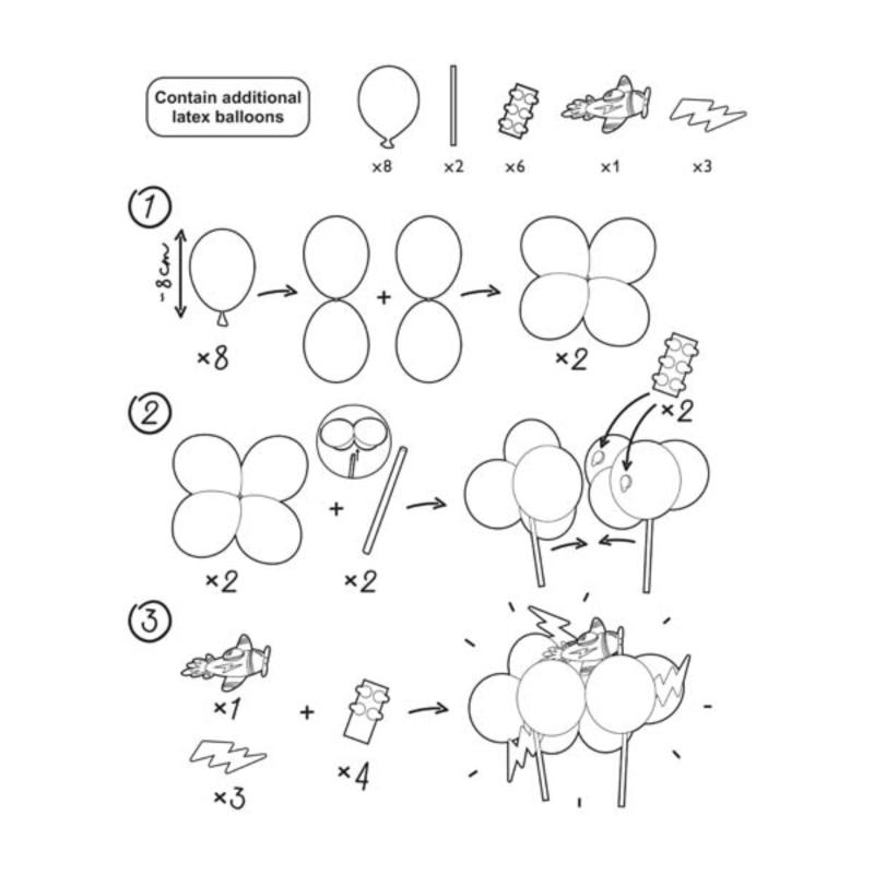 Дополнительная информация: в наборе: 10 латексных шаров, бумажный самолет, 3 бумажных молнии, 2 бумажные соломинки и 6 самоклеющихся кружков.