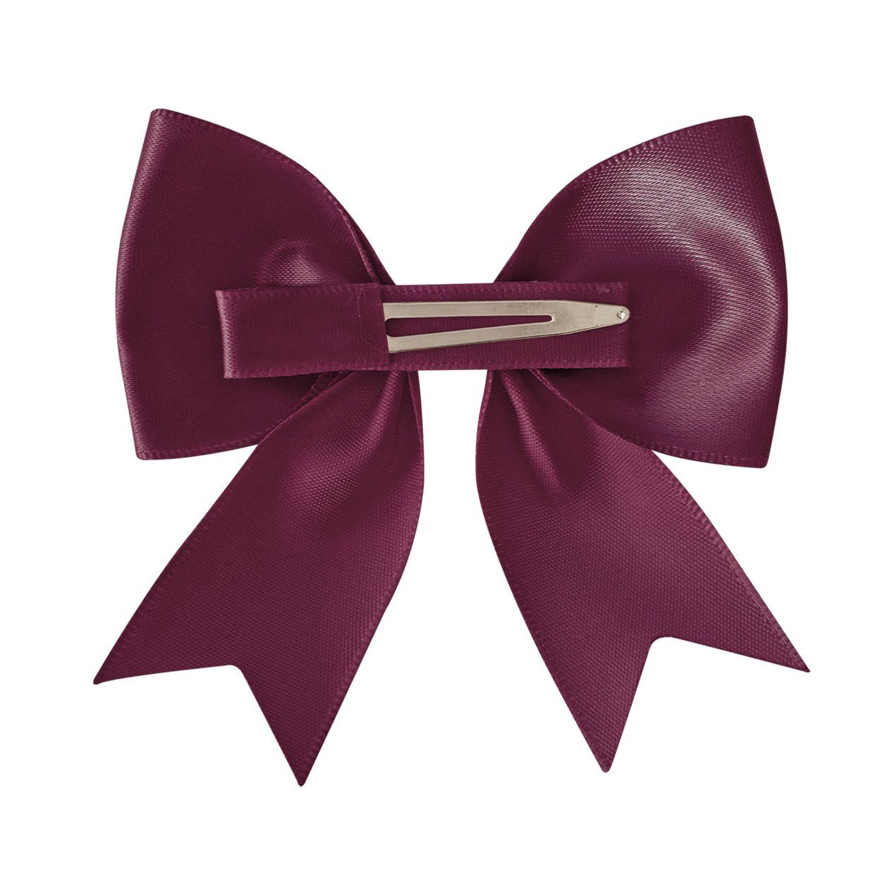 Эта заколка выполнена в виде классического бантика с ленточками в изысканном цвете бургунди. Она очень красиво смотрится на волосах и отлично подойдет школьнице для создания полного образа, гармонирующего со всей школьной формой. Надёжные защелка-крокодильчик удобна, и девочка сможет сама подправить причёску.