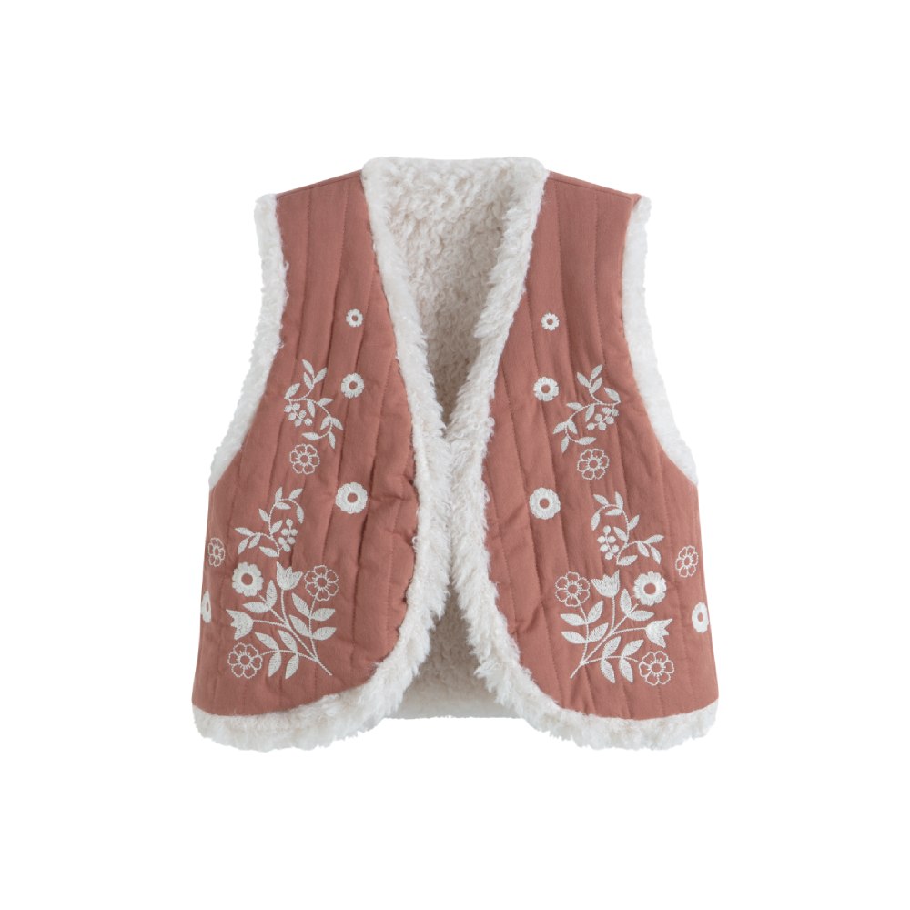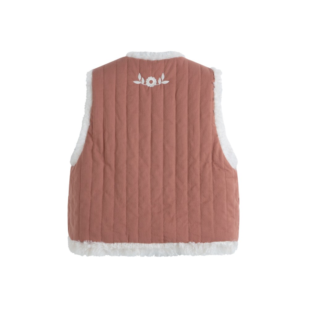 Жилет "Rust" в теплом коричневом тоне станет удобным слоем в прохладные дни. Его легко надеть поверх рубашки или блузки, создавая многослойный, стильный и уютный образ. Природный оттенок добавляет естественности и гармонично вписывается в детский гардероб.