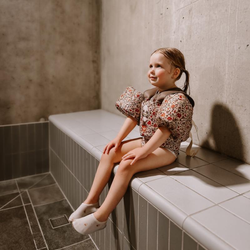 Комбинированный жилет для первого знакомства ребёнка с водой. Конструкция жилета и нарукавников обеспечивает устойчивость на воде. Ребёнок может свободно двигаться, учиться грести руками и ногами. Регулируемые застёжки подстраиваются под любую комплекцию. Обратите внимание: этот жилет помогает учиться плавать под наблюдением взрослых, но не заменяет спасательный жилет. Цветочный принт создаёт летнее настроение.