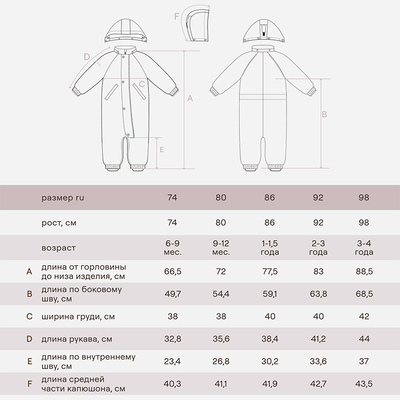Дополнительная информация: высокая степень утепления до −25 ⁰С. Водоотталкивающая пропитка BIONIC-FINISH® ECO с показателем водонепроницаемости - 8000 мм. Паропроницаемость - 5000 г/м²/24 часа. Ткань верха обладает высокой износостойкостью, истирание с показателем в 70 000 циклов. В комбинезоне используется утеплитель Sorona® Aura by DuPont Sorona® Aura by DuPont — это инновационный, экологически чистый утеплитель, частично изготовленный на растительной основе, что снижает его воздействие на окружающую среду. Внутренние подтяжки (для размеров 80, 86, 92, 98, 104) позволяют снять верхнюю часть комбинезона в помещении и зафиксировать его на плечах ребенка. В комбинезоне размера 74 внутренние подтяжки не предусмотрены.