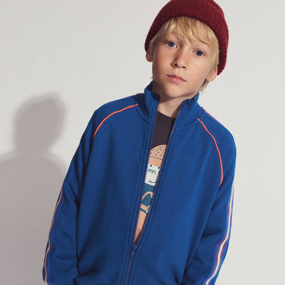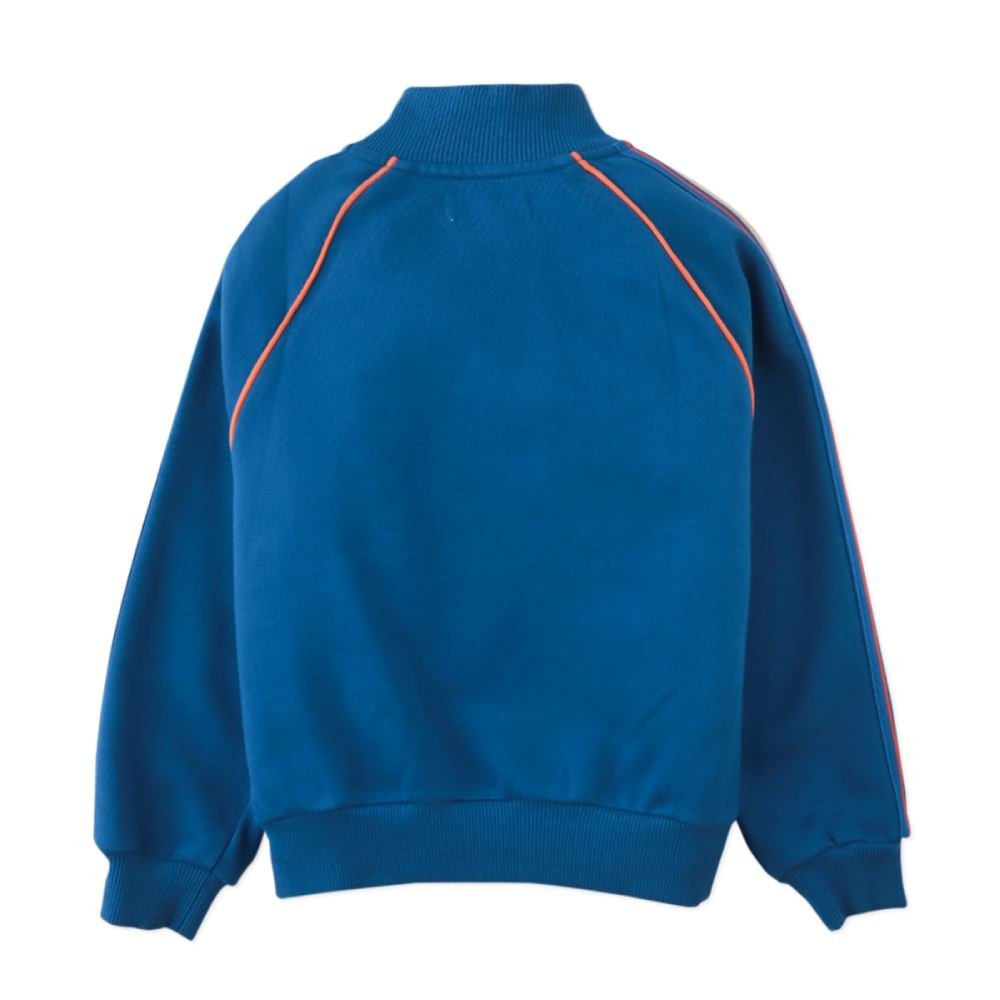 Мягкая и удобная зип-кофта станет незаменимой вещью в гардеробе вашего ребёнка. Выполненная из качественного материала, она подарит комфорт во время прогулок, игр на свежем воздухе или отдыха дома. Стильный синий цвет сочетается с любой одеждой, а застёжка-молния позволяет легко надевать и снимать кофту. Яркий принт добавляет образу индивидуальности и настроения.