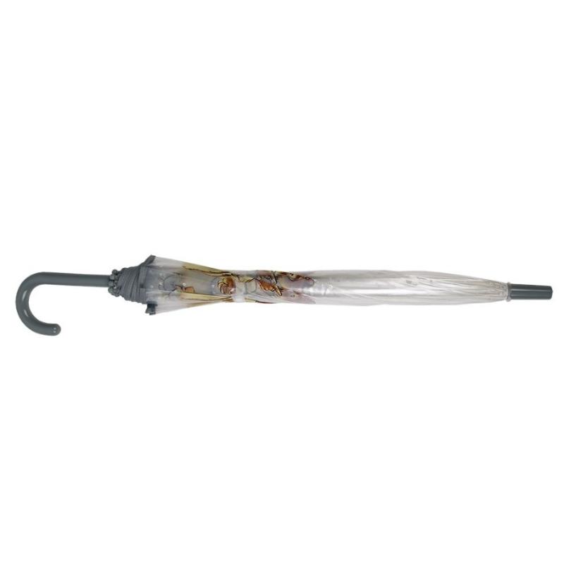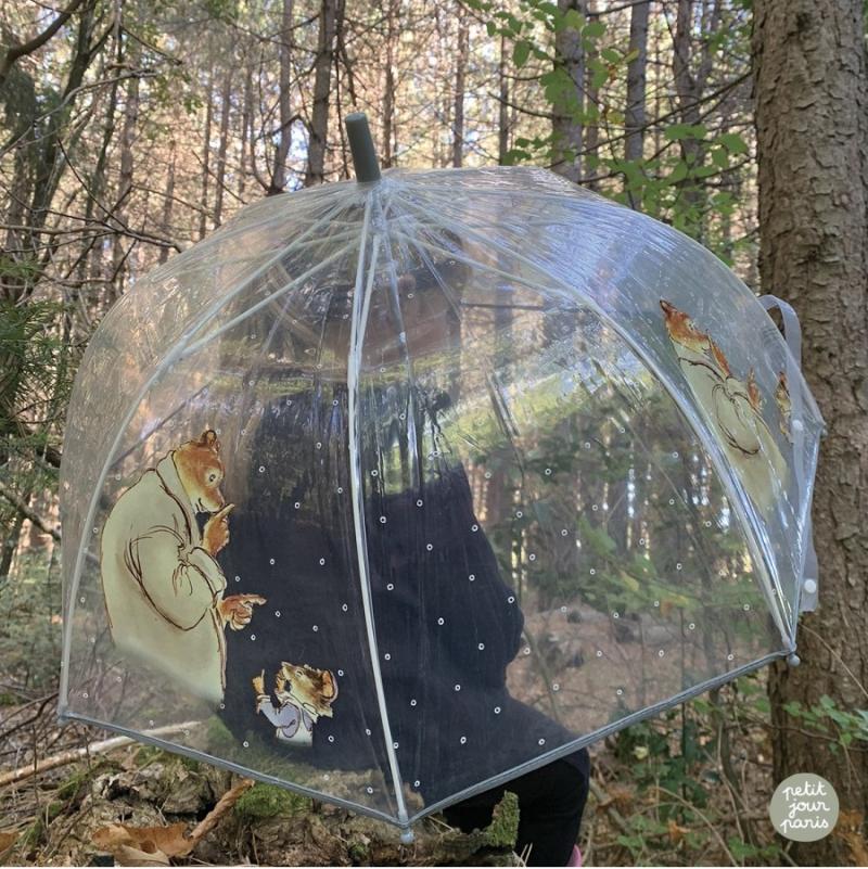 Прозрачный купол с рисунками медведя Эрнеста и мышки Селестины — ребенок видит дорогу и все вокруг. Это важно для безопасности на улице. Ручка удобная, не скользит в руке. Зонт закрывается на кнопку, ребенок справится без помощи взрослых. Легкий вес — рука не устает даже после долгой прогулки под дождем. Прозрачный материал прочный и не мутнеет со временем. Милые герои из известного мультфильма поднимают настроение в пасмурную погоду.